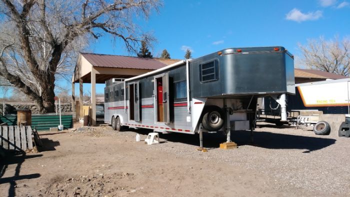 1997 Sundowner Sundance Model D This is a slant load, full living quarters 4 horse trailer. This trailer has it all! Full stud stall, with walk-through exit door, mangers with storage underneath, collapsible rear tack with removable dividers to make your horse trailer a toy hauler. Haul your ATV on your next camping trip! Mid-tack room with shelf for extra storage can be used for generator or extra tack. Queen bed and the table converts to a second bed, so youll have plenty of room for everyone. This kitchen is fully functional with a new microwave, double sink, 2 burner stove, and 6 cu ft fridge. There is lots of kitchen storage, but even more storage, a full bath with a separate shower, commode, and sink. Large closets in the bathroom, too. This is a Sundowner trailer, so it is completely aluminumno rust, so this trailer will last a lifetime. Located In Northwest ABQ NM 87114 Stock # 89008 For More Information, Call 833-265-6113