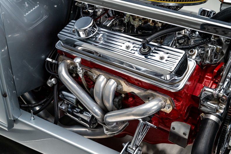 The body is a Rat's Glass fiberglass shell finished in a glossy silver that highlights the car's classic lines. A Rootlieb hood and Duval-style windshield keep things true to the era, while the electric trunk lid adds some hidden convenience. Underneath, a Painless wiring harness keeps everything clean and reliable.