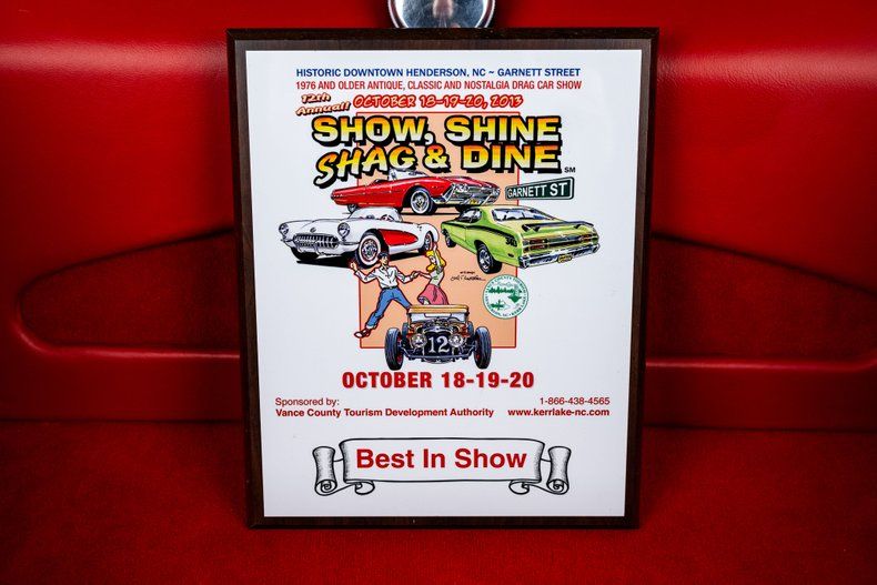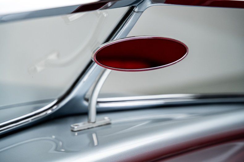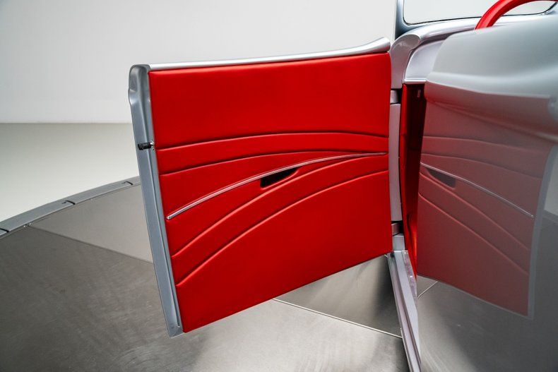 Inside, the red leather interior was crafted by award-winning trimmer Steve Holcomb. It's clean and purposeful, featuring Bobby Alloway gauges, a LeCarra steering wheel, and a Lokar shifter. The layout is uncluttered, letting the craftsmanship and materials do the talking.