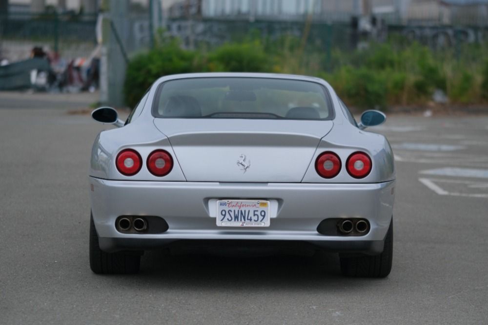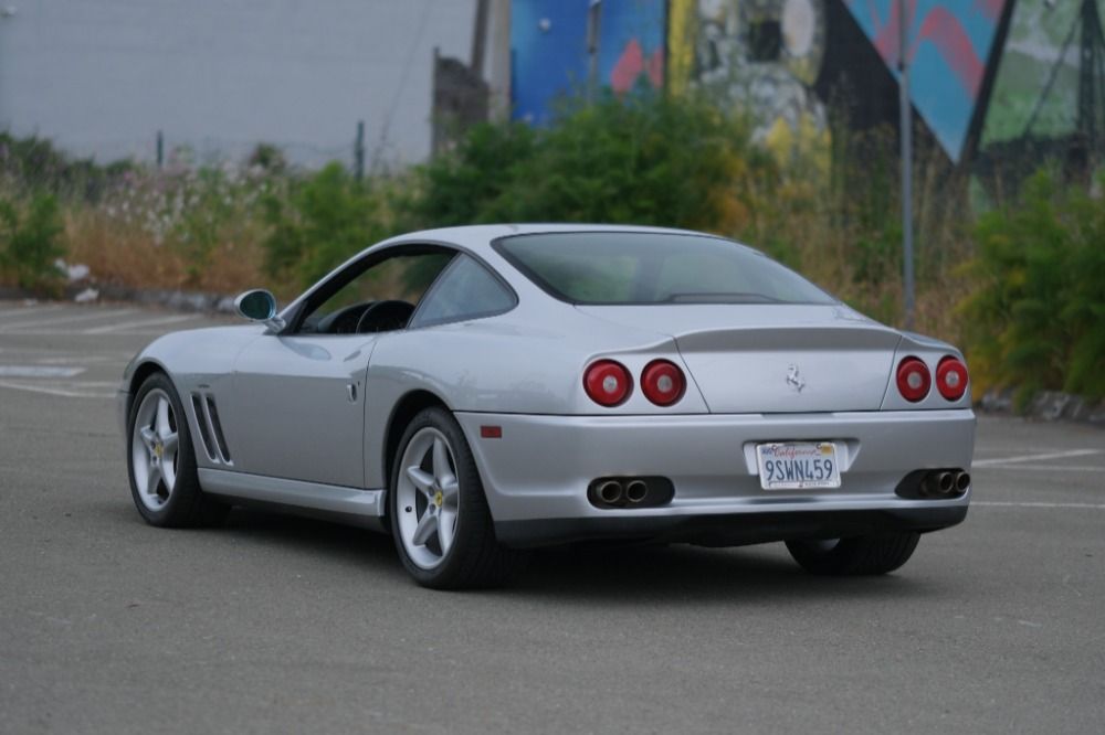 This 2000 Ferrari 550 Maranello is a beautiful California car with 50k miles. Argento with black leather interior. Offered with factory books and tools. Nice body and paint. A very clean and attractive example that runs and drives excellent. A good straight car that is due for servicing at this time. Some sticky buttons and a small crack in the lower front spoiler. The Carfax shows very minor damage reported in 2008. A highly sought-after and increasingly collectible gated 6-Speed front engined V12 Ferrari.