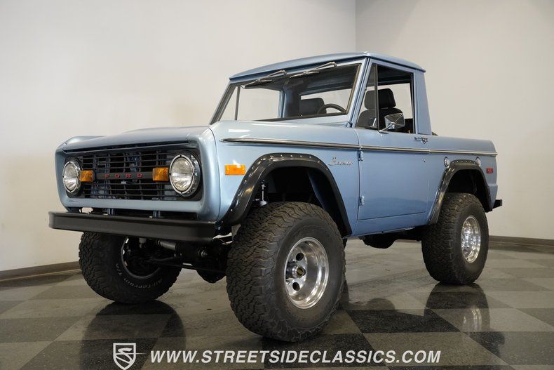Made for adventure, this 1970 Ford Bronco Half-Cab 4x4 mixes classic Ford 4x4 capability with thoughtfully selected upgrades. The 302 V8, heavy-duty drivetrain, and distinctive Brittany Blue exterior come together in a package that's ready to tackle any trail or mountain pass. Call today!