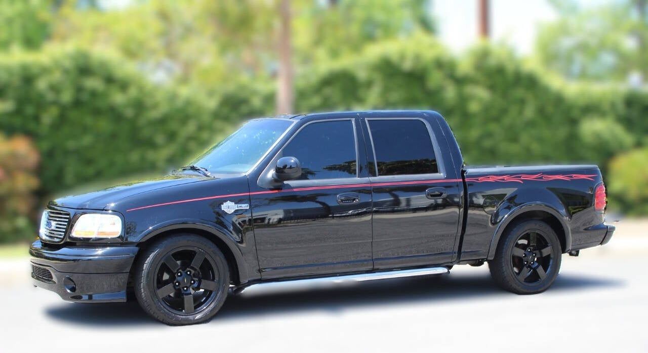 2002 FORD F-150 HARLEY DAVIDSON EDITION PICK UP 1399 Supercharged 5.4l/340hp V-8 engine 4 speed automatic transmission with overdrive 4 Leather bucket seating with front and rear consoles Sunroof Black powder coated alloy wheels with Toyo tires Harley Davidson logo bedmat Cruise control with steering wheel controls Automatic climate air conditioning Aftermarket AM/FM/CD/Phone capable stereo system Tow hitch receiver Finished in Ebony Black w/orange Harley Davidson flame pinstripe *If you are viewing this on Facebook, be sure to visit our website to view all photos. *(www.amclassiccars.com)* GIVE US A CALL @ 909-596-5700 WITH ANY QUESTIONS THAT YOU MAY HAVE. OUR BUSINESS HOURS: MONDAY-THURSDAY 9AM-4PM