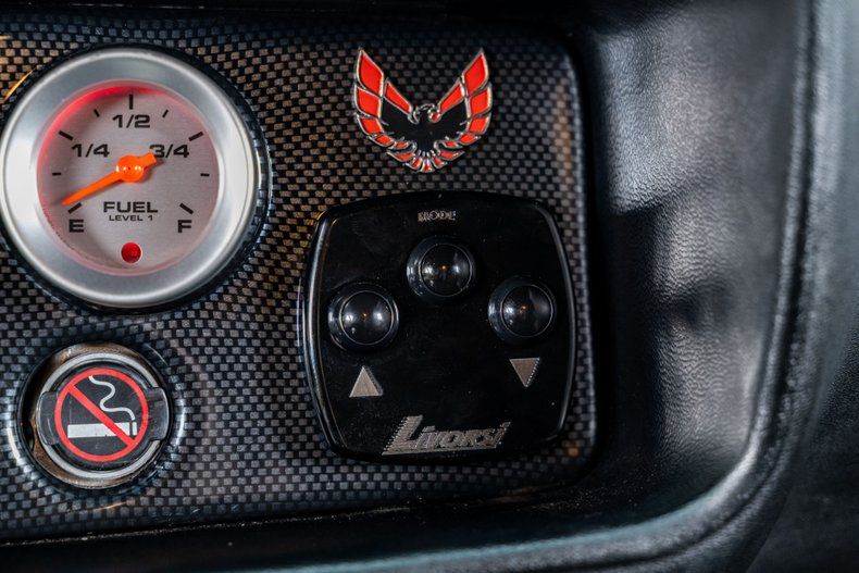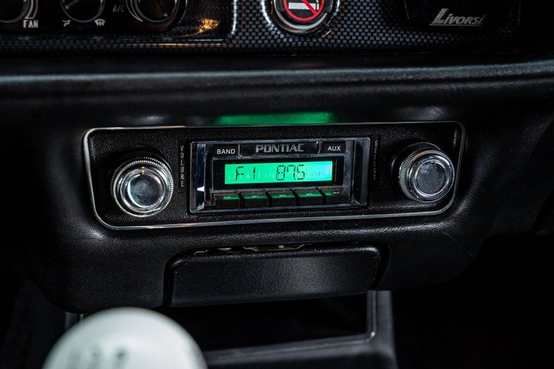 Inside, the Formula's interior is completely restored with a clean, modern vibe. High-bolster bucket seats with integrated headrests provide comfort and support, while the 3-spoke steering wheel features a custom 'Rising Phoenix' horn button as a nod to its namesake. The carbon fiber-style gauge cluster houses a full Speartech digital gauge setup, complete with a Livorsi control panel and integrated air conditioning controls. A custom center console features an American Powertrain shifter and integrated storage. And a Custom Autosound digital AM/FM radio with AUX input keeps the traditional look inside, but provides some modern connectivity.