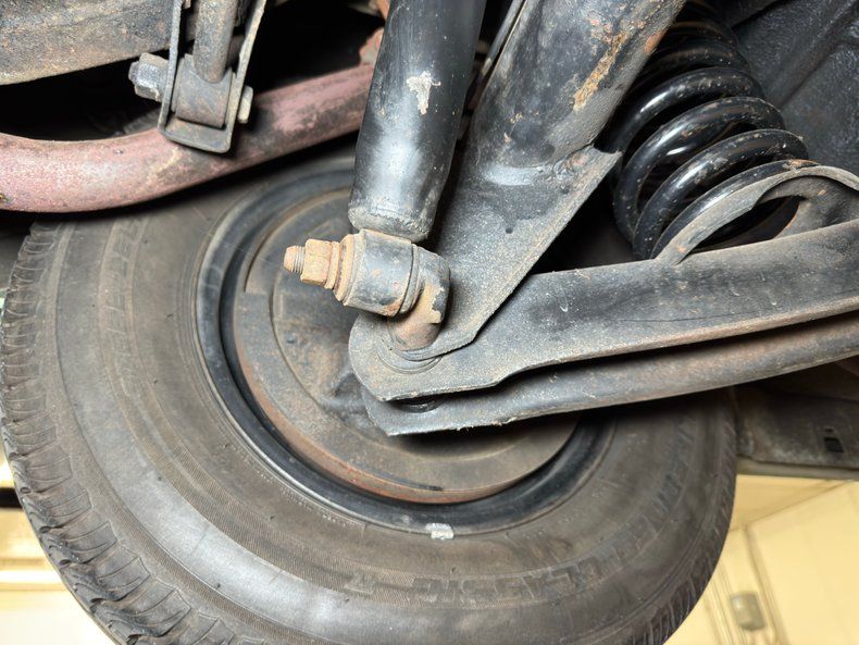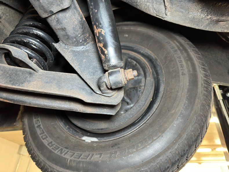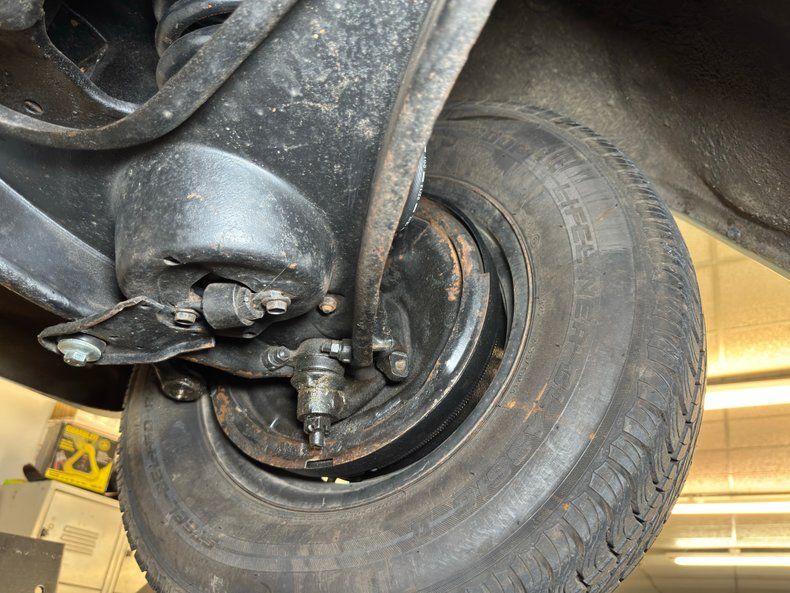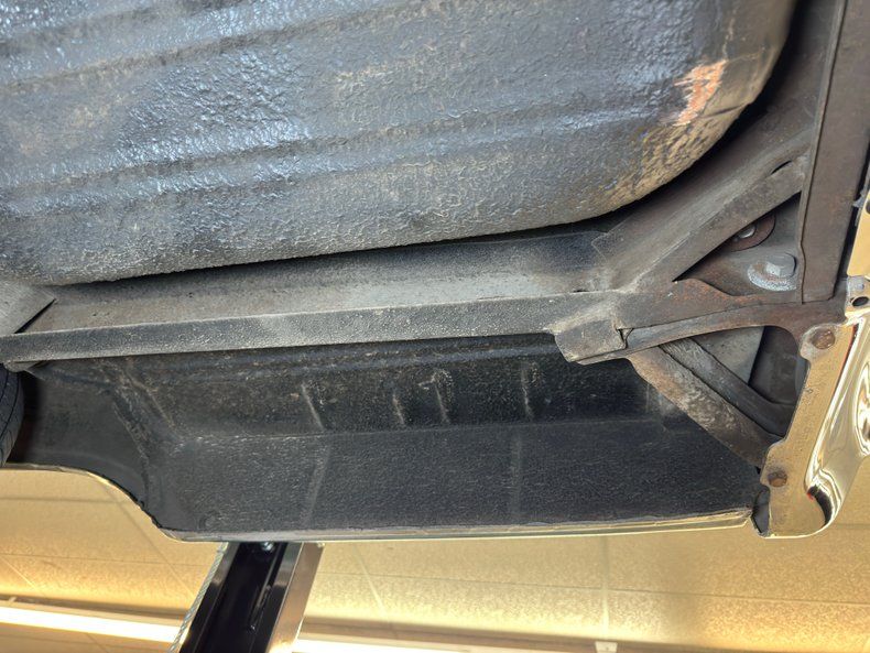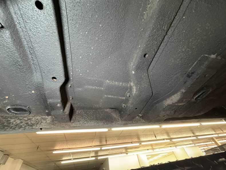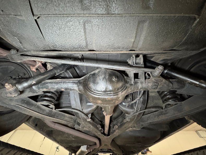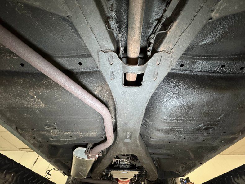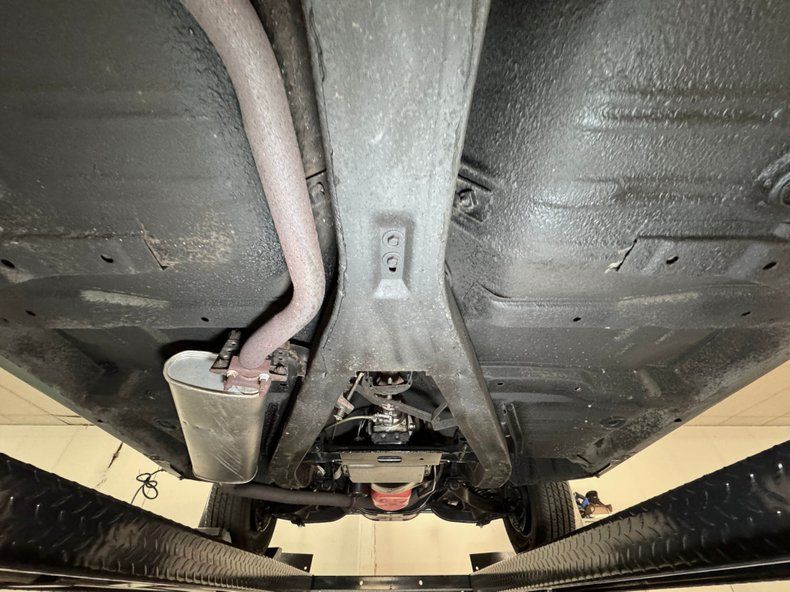 Clean and consistent with low mileage, there's only minimal surface rust and just a drop of oil on the flywheel cover. The knuckles are clear, floor pans free of rust, and the single exhaust flows through a stock style muffler before exiting via a chrome tip behind the right rear wheel. Suspension consists of coil springs up front and a 3 link with coil springs and a panhard bar in the rear.