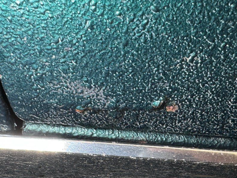 This impressive land yacht wears a coat of two stage Emerald Green Metallic over long panels and an extended overhang past the rear axle. The face portrays Pontiac's familiar beak design which extends the center of the grille that comes to a point, capped by the arrowhead of course, and flanked by dual headlights on each side. At the end of the wide, flat, and vented decklid are simple tail lights that vary little from GM's other offerings in this period, here bookended by extended fenders that hint of fins without going all out. 15-inch steel wheels are topped with correct hubcaps and wrapped in 75 series white walls with the thin band of white common in this era. The black canvas top is in good shape, but the glass window is loose and subject to some duct tape repair. Other imperfections include some fading paint around the tail light bezels, orange peel in the paint, and some bubbling on a lower panel.