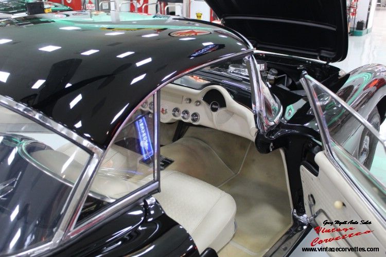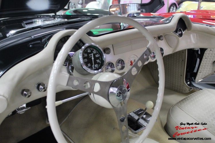 1957 Corvette Onyx Black (1 of 11 ) Maybe 1 of 3 cars, Ivory Interior, Black Soft Top, All Correct born with 283-270Hp, 3 Speed, 3.70 Rear, Off Road Exhaust, 5.5 Inch Wheels, Radio Delete, Both Tops, Accessory Column Mounted Tachometer (579E), Frame off restoration, 32k Miles Believed to be Correct, Bloomington Gold, NCRS Second Flight, 3 Owner car with paperwork Title copies, Believed the car was Drag Raced back in the 60s with some History. Photos and History and Owners back to 1968. Special Detailed Report on car from Roy Sinor. Great Color for 1957 Corvette. Trades Considered www.vintagecorvettes.com Call 706 857-3916 or 706 506-5745
