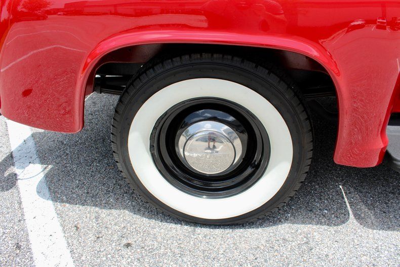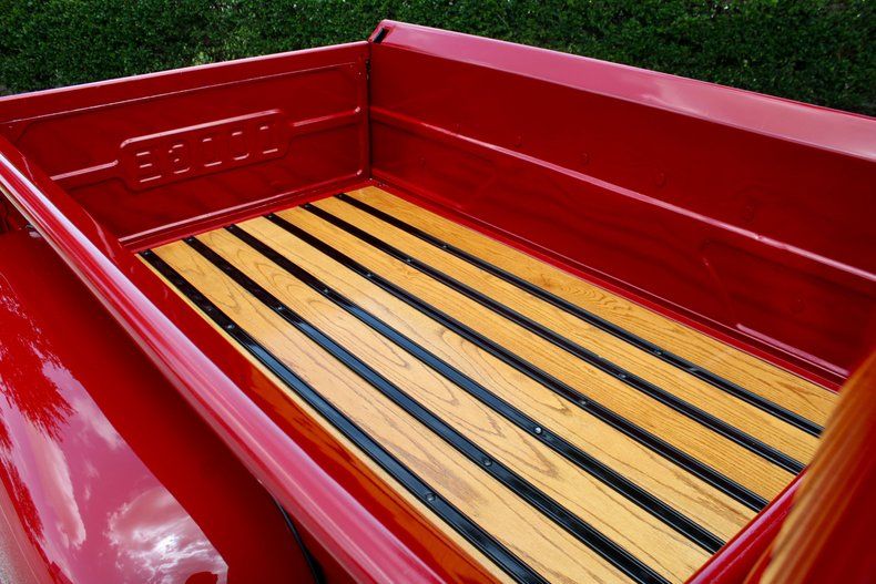 EXTERIOR: Classic Red Paint Black-painted front bumper & grille Wide whitewalls for an authentic period look Wood bed " beautifully finished and functional Rare low-side pickup box (final production year)