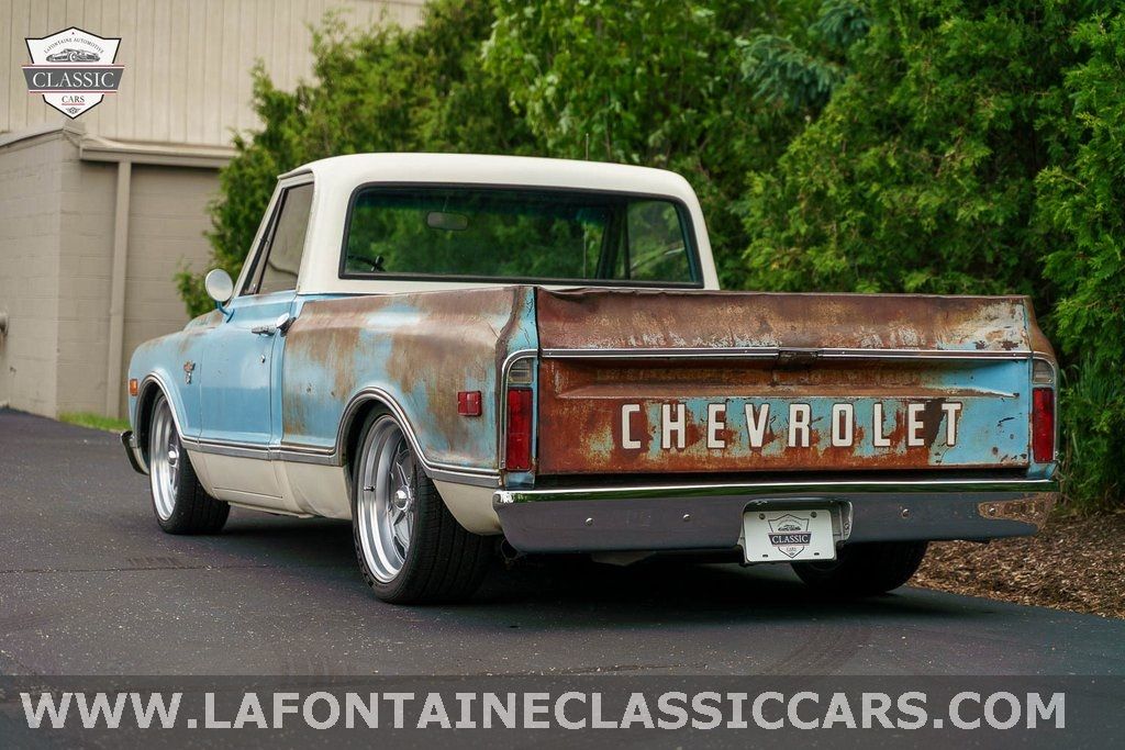 This 1968 Chevy C10 Short Bed combines vintage patina with serious modern performance. A solid Texas truck with great original patina it rides on a fully restored chassis that has been blasted c-notched and professionally resprayed. The stance is dialed in with a CPP 5/7 drop tubular control arms up front and CPP tubular trailing arms in the rear.