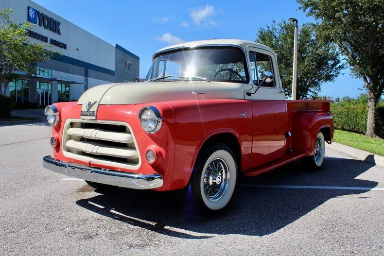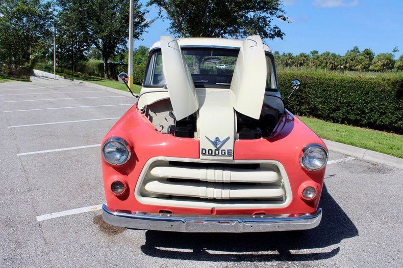 Offered by Classic Cars of Sarasota, this stunning 1956 Dodge C Series Custom Regal Pickup is a rare and eye-catching example of post-war Mopar ingenuity - fully restored and ready to turn heads wherever it goes. Finished in a striking Coral and White two-tone paint scheme, this Dodge Custom Regal blends vibrant color with vintage charm. The high-level Custom Regal trim package, seldom seen today, adds even more exclusivity to this already rare pickup.