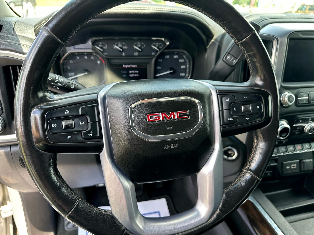 Trailering Package includes trailer hitch- 7-pin and 4-pin connectors and (CTT) Hitch Guidance, ProGrade Trailering System includes (PZ8) Hitch Guidance with Hitch View and (U1D) In-vehicle Trailering App, Engine- 5.3L EcoTec3 V8 (355 hp [265 kW] @ 5600 rpm- 383 lb-ft of torque [518 Nm] @ 4100 rpm); featuring all-new Dynamic Fuel Management that enables the engine to operate in 17 different patterns between 2 and 8 cylinders- depending on demand- to optimize power delivery and efficiency, Rear axle- 3.23 ratio (Not available with (NHT) Max Trailering Package.), Pickup bed, GVWR- 7100 lbs. (3221 kg) (Requires Crew Cab 4WD model with (L84) 5.3L EcoTec3 V8 engine or (L87) 6.2L EcoTec3 V8 engine without (NHT) Max Trailering Package. Requires Crew Cab or Double Cab 2WD model with (L84) 5.3L EcoTec3 V8 engine and (NHT) Max Trailering Package. Requires 4WD Double Cab models and (LM2) Duramax 3.0L Turbo-Diesel I6 engine.), Automatic Stop/Start, Differential- heavy-duty locking rear, Transfer case- single speed- electronic Autotrac with push button control (4WD models only), Four wheel drive, Cooling- external engine oil cooler (Not available with (LM2) Duramax 3.0L Turbo-Diesel I6 engine.), Cooling- auxiliary external transmission oil cooler (Not available with (LM2) Duramax 3.0L Turbo-Diesel I6 engine.), Alternator- 170 amps (Included and only available with (L84) 5.3L EcoTec3 V8 engine or (L87) 6.2L EcoTec3 V8 engine. Not available with (NHT) Max Trailering Package- (LM2) Duramax 3.0L Turbo-Diesel I6 engine or (VYU) Snow Plow Prep Package.), Battery- heavy-duty 730 cold-cranking amps/80 Amp-hr- maintenance-free with rundown protection and retained accessory power (Included and only available with (L84) 5.3L EcoTec3 V8 engine- (L3B) 2.7L Turbo engine and (L87) 6.2L EcoTec3 V8 engine.), Frame- fully-boxed- hydroformed front section, Trailer brake controller- integrated, Cargo tie downs (12)- fixed- rated at 500 lbs per corner, Steering- Electric Power Steering (EPS) assist- rack-and-pinion, Brakes- 4-wheel antilock- 4-wheel disc with DURALIFE rotors, Capless Fuel Fill, Exhaust- single outlet, Exhaust- aluminized stainless-steel muffler and tailpipe, Wheel- 17"" x 8"" (43.2 cm x 20.3 cm) full-size- steel spare, Wheelhouse liners- rear, Tire carrier lock keyed cylinder lock that utilizes same key as ignition and door, Bumper- front chrome lower, Bumper- rear chrome with bumper CornerSteps, CornerStep- rear bumper, Moldings- window surround- Chrome, Grille (Chrome surround with high gloss Black mesh and Chrome inserts.), Fog lamps- LED, Taillamps- LED signature taillight with LED stop and reverse light, Mirror caps- chrome, Glass- deep-tinted, Lamps- cargo area- cab mounted integrated with center high mount stop lamp- with switch in bank on left side of steering wheel., LED Cargo Area Lighting located in cargo box activated with switch on center switch bank or key fob, Tailgate- gate function manual with EZ Lift includes power lock and release- includes hitch area light, Tailgate and bed rail protection caps- top, Door handles- chrome, Radio- HD, Audio system feature- 6-speaker system, Steering wheel audio controls, 4G LTE Wi-Fi Hotspot capable (Terms and limitations apply. See onstar.com or dealer for details.), Seat adjuster- driver 10-way power including lumbar, Seat adjuster- passenger 10-way power including lumbar, Seat- Up-level Rear with Storage Package- 60/40 folding bench for Crew Cab models- includes full-length bench seat- seatback storage on left and right side- center fold out armrest with 2 cupholders- full cab width under-seat storage- (includes child seat top tether anchor), Floor covering- color-keyed carpeting, Steering column- manual Tilt-Wheel and telescoping, Steering wheel- leather-wrapped, Steering wheel- heated, Instrument cluster- 6-gauge cluster featuring speedometer- fuel level- engine temperature- tachometer- voltage and oil pressure, Driver Information Center- 4.2"" diagonal color display includes driver personalization, In-vehicle Trailering App- System includes checklist- trailer maintenance reminders- trailer security alerts- trailer mileage- tow/haul reminder and trailer electrical diagnostics, Compass- located in instrument cluster, Exterior Temperature Display- located in radio display, Brake lining wear indicator, Remote vehicle starter system, Theft-deterrent system- unauthorized entry, Steering column- lock control- electrical, Power outlet- instrument panel- 120-volt (400 watts shared with (KC9) bed mounted power outlet), USB ports- dual- charge-only (2nd row), Power outlet- bed mounted- 120-volt (400 watts shared with (KI4) instrument panel mounted power outlet), Air conditioning- dual-zone automatic climate control, Air vents- rear, Assist handles front A-pillar mounted for driver and passenger- rear B-pillar mounted, GMC Connected Access capable (Subject
