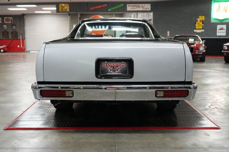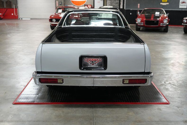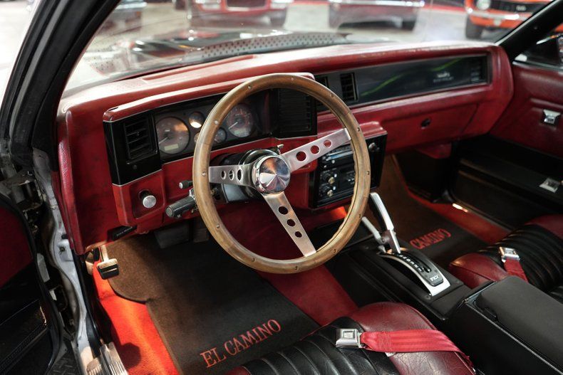 This 1986 Chevrolet El Camino blends street performance and show-quality style with a Blueprint 400 Small Block Chevy V8 paired to a TCI 700-R4 automatic transmission and a 3.73 POSI rear end. Featuring air conditioning, power steering, and power brakes, it's as comfortable as it is capable. The red and black leather interior complements the silver and black two-tone exterior with red pinstriping, while 15" Ultra Motorsports Drifter wheels and electric cutouts give it an aggressive stance and sound. Enhanced with MSD ignition, Holley 4-barrel carb, three electric fans, and projector halo headlights, this El Camino is built to turn heads.