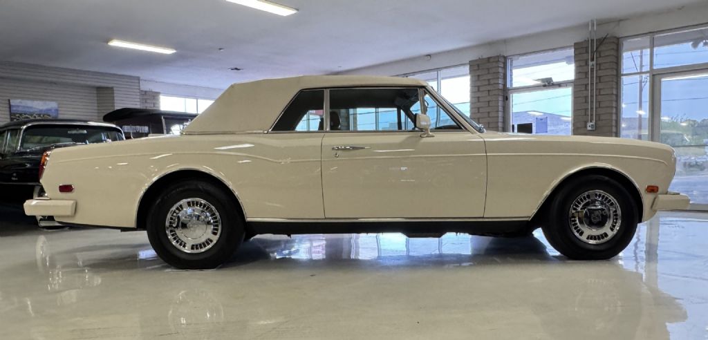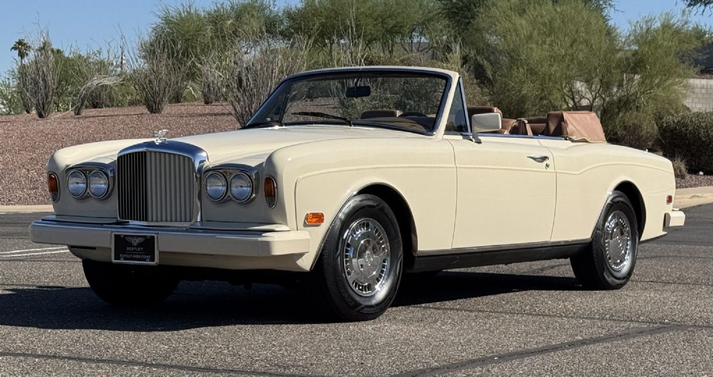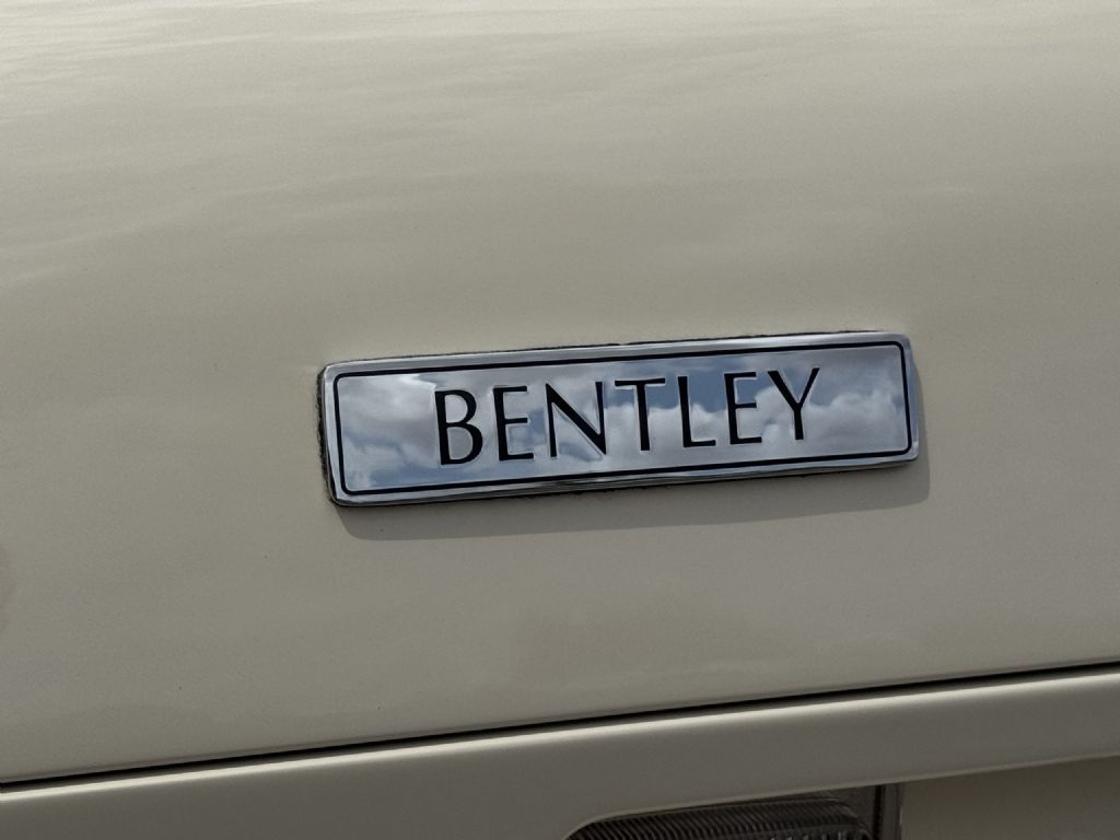 The Bentley exterior is in very good to excellent overall condition. The Magnolia (RR.9620038) paint is in very good to excellent condition with double tan pinstripes. The front exterior has very minor touched up rock chips underneath the headlights from normal use. The color coated bumpers, chrome and stainless steel accents are in very good to excellent condition. The Cream Everflex power convertible top is in very good to excellent condition, functions well, and includes the Tan leather top boot cover. The chrome 15 wheels are in very good condition and the radial tires are all new. This is a well-preserved example that would be a great weekend driver while being a beautiful collectors example that can be proudly shown.