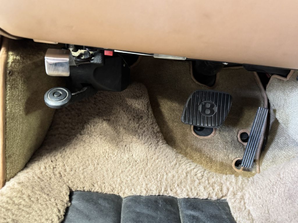 This Bentely has air conditioning that blows cold. Features include power window adjustments, power locks, power seats, seat position memory, radio with cassette player, Motorola car phone, ambient temperature gauge and analog clock. The power seat adjustment panel shows wear from normal use over time. All instruments and gauges work as expected. This Bentley is in great condition and a wonderful example!