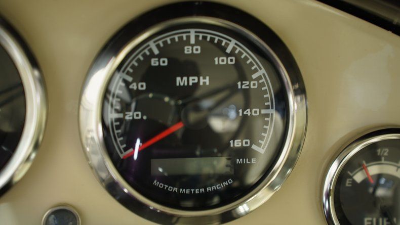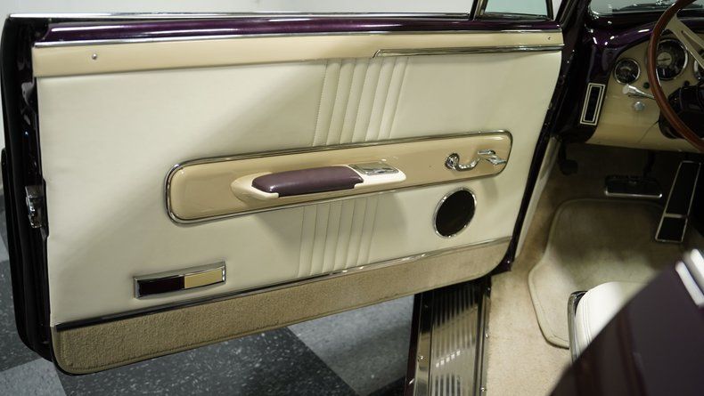 Flip open the door and you'll discover a white leather cockpit built for serious cruising. Those mid-60s Thunderbird bucket seats aren't just for show " they offer perfect support for long drives. The custom-fabricated dash blends elements from a '50 Mercury and '54 Packard into a one-off masterpiece filled with crystal-clear gauges. A center console houses the automatic shifter in perfect reach of the driver. Cool air blasts from the AC system while the AM/FM CD player pumps out your favorite driving soundtrack. Every inch of this cabin shows the same attention to detail as the exterior modifications.