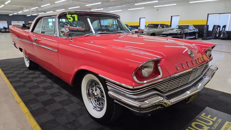 1957 Chrysler Windsor two-door hardtop. 354 cubic inch V8 engine, known as the "semi-hemi," paired with a push-button automatic transmission. Beautiful condition, with straight panels, vibrant two-tone paint in a particular shade of red, an ivory top, and gleaming chrome detailing. Fit and finish is great. The interior retains plastic seat covers and its classic dashboard, preserving 1950s authenticity. Recent maintenance includes a rebuilt transmission, new head gasket, fresh oil change, lower ball joints and radius arms, and brake servicing, ensuring it runs smoothly and reliably. The power steering and power brakes enhance drivability, while the wide whitewall radial tires and real wire-spoked wheels add to its vintage charm. The push-button start and gear selection is easy to use and functions smoothly. The radio, wipers, blower motor and gauges are functioining. A hard to find well-preserved example of 1950s American automotive design from Chrysler, perfect for collectors, car shows, and cruising enthusiasts. To start, turn the key and then fully depress the neutral/start button on the dash to the left of the wheel. On the road it rides as good as it looks, easy and comfortable to drive with nice performance and responsive brakes.