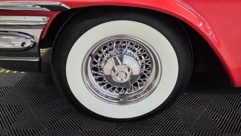 1957 Chrysler Windsor powered by a 354 cubic inch V8 engine,"semi-hemi," paired with a push-button automatic transmission. Two-tone paint scheme with chrome accents and wire-spoked wheels with wide whitewall radial tires Original style interior, retaining plastic seat covers and a stock dashboard, reflecting the 1950s styling and design Recent service includes a rebuilt transmission, new head gasket, fresh oil change, and brake service, and more. The push-button start system and smooth automatic transmission operate smoothly