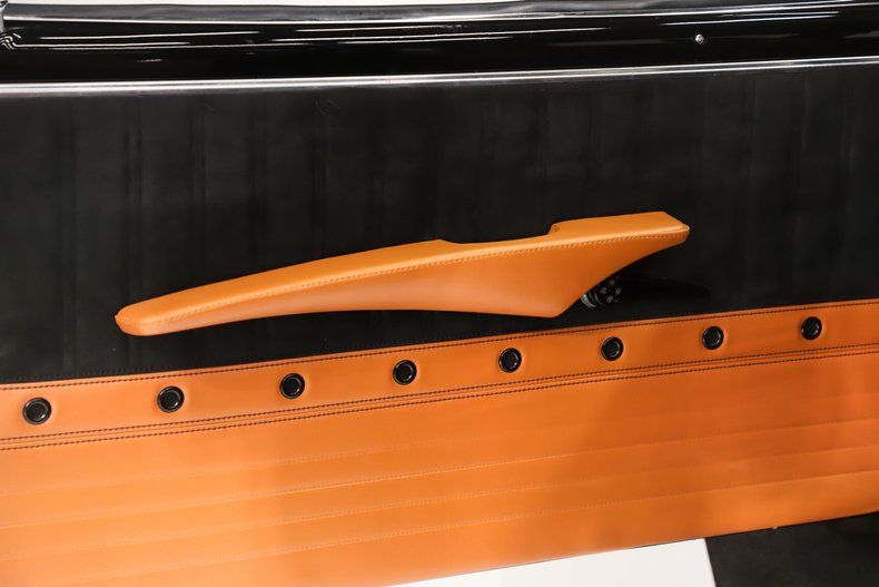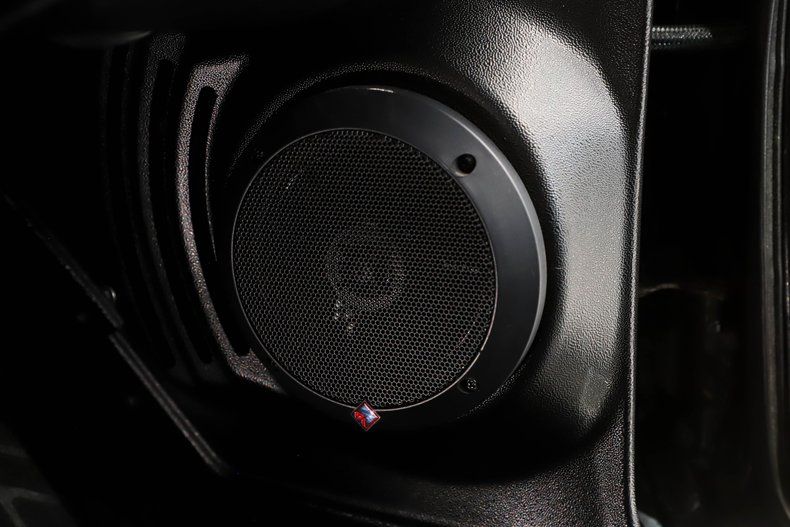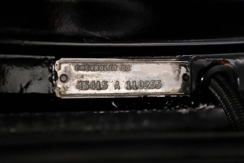 UNDERSIDE: The body was off the frame for a complete restoration with upgrades. The front end steering and suspension was completely replaced and upgraded with tubular control arms, fat swaybar and lowering springs. In back is a four link system with tubular control arms, lowering springs, a swaybar and air shocks. The fuel system was all replaced and compatible with fuel injection. The dual exhaust has stainless steel Magnaflow mufflers and a crossover pipe. The brake system has a custom e-brake assembly and disc brakes at all four of the wheels. Looking up at the motor it is clean and has a high torque starter. There's a custom scatter shield, a T56 Tremec 6-speed manual trans with a hydraulic clutch. A custom driveshaft leads back to the 10 bolt rear with cruising 3.23 gears and a chrome cover. The floors are all clean metal painted satin black, the frame is semi-gloss.
