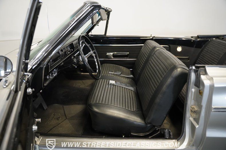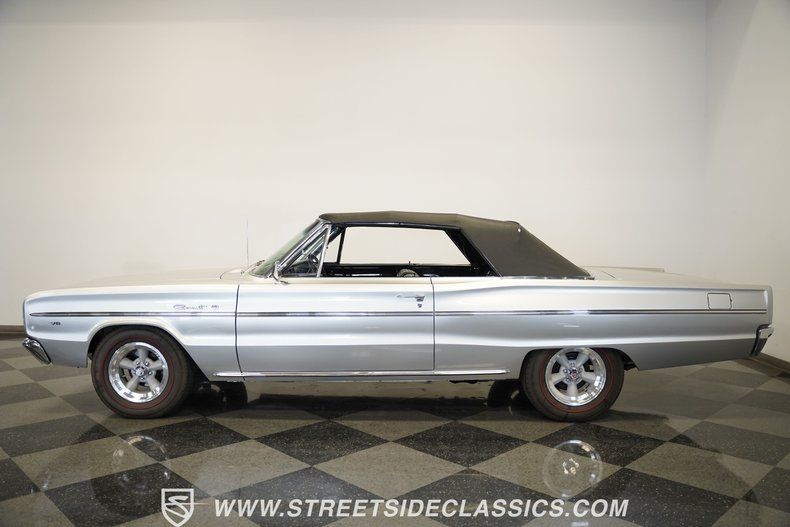 Silver mist poly paint coats this 1966 Dodge Coronet 440 Convertible with true 60s flair. At 72,777 miles believed original, this American classic maintains authentic character throughout. Crisp body panels run from front to back, maintaining excellent alignment throughout. Chrome trim remains in good condition across this convertible. Black vinyl makes up the convertible top, fitting snugly with no tears or issues. American Racing 15-inch wheels fill the wheel wells while 225/70R15 Toyo redline tires grip the road. Overall exterior condition of this Coronet impresses with minimal flaws.