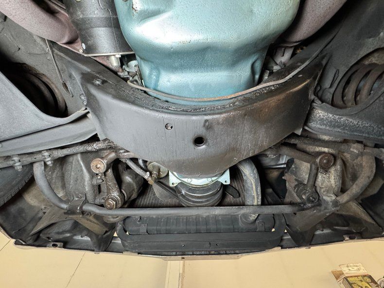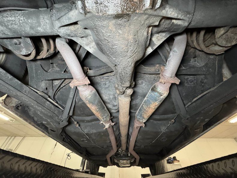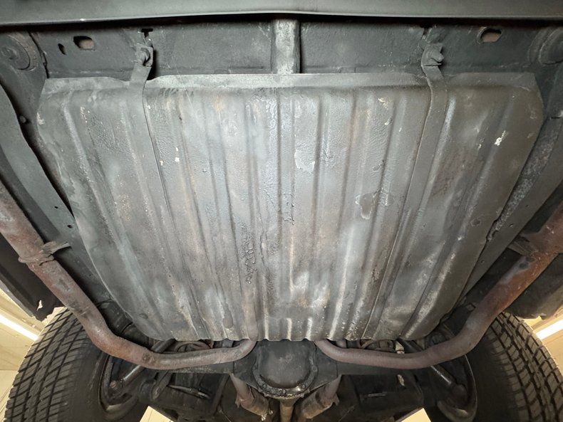 Mainly clean underneath with some driver quality elements including some surface rust on the exhaust and driveshaft and some oil on the rear differential. The pans are dry and the knuckles are clear. Dual exhaust runs through glasspack style mufflers before finding an exit via steel pipes out back. Coil spring suspension occupies the front independent system while a 4 link with coil springs is equipped out back.