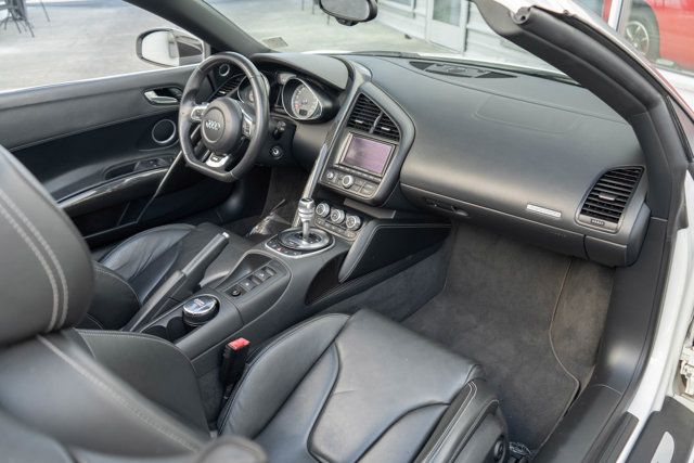 *2011 Audi R8 Spyder* * $160,150 MSRP With $23,350 in Factory Options * Ibis White Over Black Leather Interior * 6-Speed R-Tronic Gearbox, Bang and Olufsen Stereo, Carbon Sigma Interior*Factory Options* * Convenience Package * R-Tronic Paddle Shift Gearbox * Enhanced Leather Package * Audi Navigation System * 19-Inch Forged Wheels * Titanium Finish * LED Headlights * Carbon Sigma Exterior Mirrors * Carbon Sigma Interior Trim * Bang and Olufsen Audio * Perforated Leather Wrapped Steering Wheel * Lunar Silver Stitching*Additional Information* * Woodland Hills, CA, and Scottsdale, AZ Car From New*Standard Features* * 4.2L V8 Engine * 414 Horsepower/317 Lb-Ft of Torque * Stability Control * Traction Control * Self-leveling Xenon headlights * LED brake lamps * Auto climate control * Heated sport seats * Race-inspired flat-bottom sport steering wheel * Power rear spoiler * Rain sensing window wipers * Speed sensitive window wipers * Daytime running lights * Dusk sensing headlight * Turn signal in mirrors * Power heated mirrors * Sport-tuned suspension with adjustable damping * Performance brakes * Dry sump engine lubrication system * Electronic differential lockFor more information on this 2011 Audi R8 V8 Spyder or any of our 100+ high-performance cars always in stock, contact one of our friendly and knowledgeable sales consultants or always feel free to stop by our Bellevue, WA Park Place Ltd campus - where we have over 40,000 sq ft of indoor showrooms filled with the finest cars. As part of the Park Place Motor Group family, which includes Park Place Aston Martin and Lotus of Bellevue -- Nobody Has What We Have!
