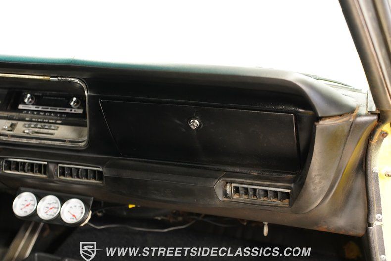 The interior is black-on-black and looks very clean with new original-style upholstery on both the front and rear bench seats. The steering wheel, column shifter, dashboard, and gauges appear completely original, while three aftermarket gauges, which include Water, Volts, and Oil, have been added to help you keep an eye on performance. The carpets and headliner have been replaced, and a new package tray has been installed. Original Mopar floor mats are included and are easily washable. An aftermarket AM/FM radio adds plenty of entertainment options to keep your cruise enjoyable.