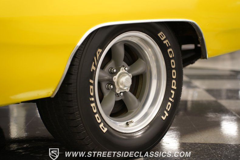 Under the hood sits a 383 cubic-inch V8 with a single four-barrel carburetor under a stock-appearing air cleaner cover. Power is delivered to a 3-speed automatic transmission to be evenly disbursed to the rear-end. The front suspension uses a torsion bar with shocks, while the rear relies on leaf springs with shocks for comfort and traction. Stopping power comes from front and rear power drum brakes. The car wears P215/65R15 tires in the front and P225/60R15 tires in the rear, all mounted on iconic American Racing 15-inch wheels. And if you roll down the windows as you drive, you can enjoy the sound of the dual exhaust flowing through a set of Flowmaster mufflers as you cruise.