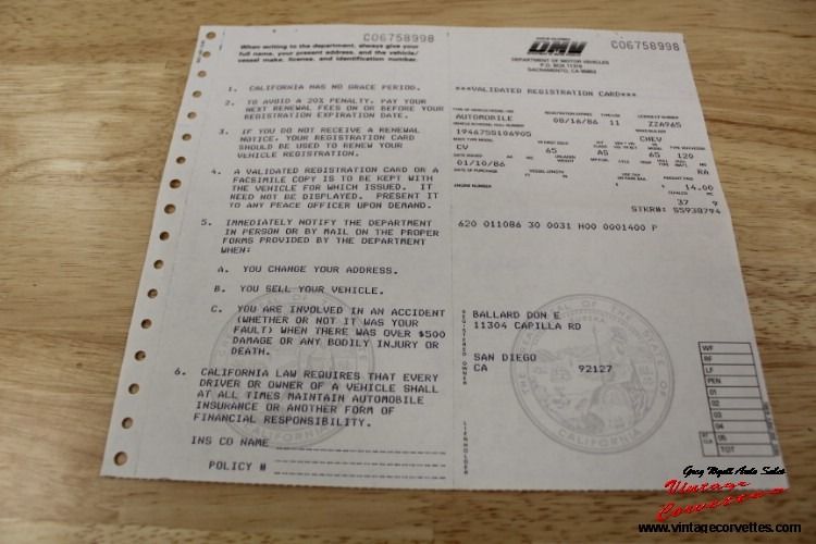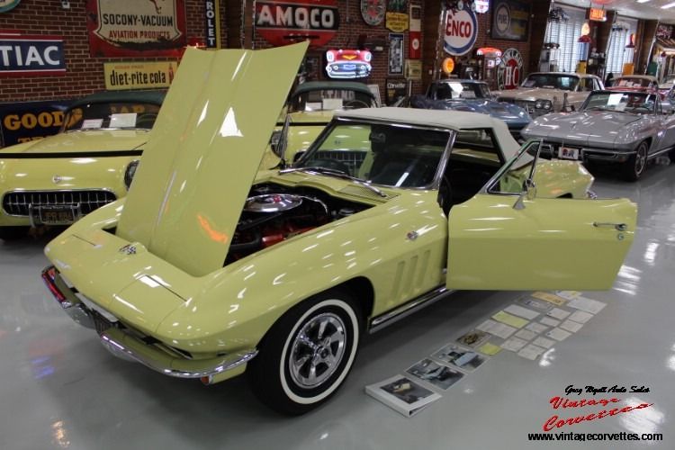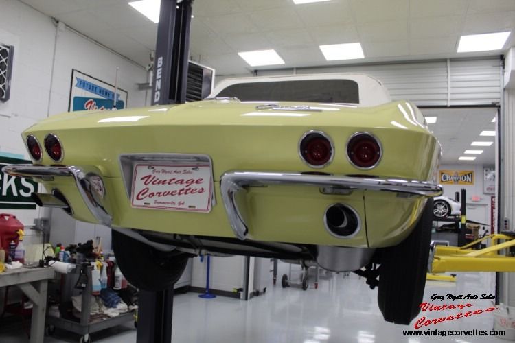 1965 Corvette Convertible. Goldwood Yellow (code XX), Black Interior, White Softtop, All Correct matching Numbers 327-250hp V8, 4 speed, Power steering, Both Tops, White wall Tires, Tinted Glass, Am/Fm Radio, Frame on restored, Original California Car with Registration back to the 70- 80s. Same owner over 40 Years (Georgia). Believed to be 35,535 Original Miles! Car Runs and drives Great! Some restoration Photos. Drive this car anywhere! Trades Considered. www.vintagecorvettes.com 706 857-3916 or 706 506-5745