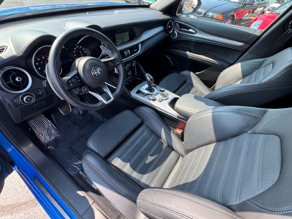 2023 Alfa Romeo Stelvio Veloce AWD, Misano Blue Metallic on Black Leather, 1 Owner, Clean Carfax, $61,150 MSRP, Remainder of 4YR/50K Mile Factory Warranty, Premium Interior and Sound PKG, Active Assist Plus PKG, 21Inch x 8.5Inch Dark 5Hole Aluminum Wheels, HD Radio with Navigation, Apple CarPlay & Google Android Auto, Active blind spot assist, driver attention alert, highway assist system, intelligent speed assist, lane keep assist, traffic jam assist, and traffic sign recognition, LaneKeep Assist Intelligent Speed Assist (ISA) Highway Assist System TrafficSign Recognition Traffic Jam Assist Active BlindSpot Assist Driver Attention Alert, FullSpeed ForwardCollision Warning Plus Lane Departure Warning Adaptive Cruise Control with Full Stop BlindSpot and CrossPath Detection Front and Rear ParkAssist Sensors Rear BackUp Camera Supplemental Front SeatMounted Side Air Bags LATCHReady ChildSeat Anchor System Remote KeylessEntry RemoteStart System Engine Stop / Start System Automatic HighBeam HeadlampControl AutomaticDimming Exterior Mirrors Power Folding Heated Mirrors RainSensitive Windshield Wipers Acoustic Laminated Front Door Glass Heated WasherNozzles Universal GarageDoor Opener Carbon Fiber Drive Shaft Alfa DNA Drive Mode System HandsFree Power Liftgate