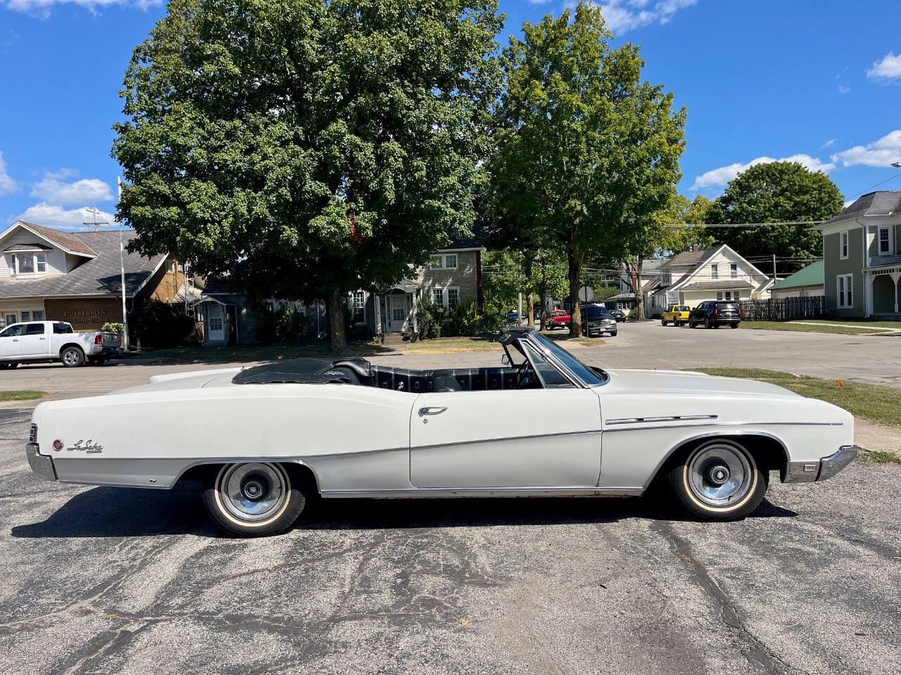 FOR SALE AT 500 CLASSIC AUTO - BEST TO CALL 765-345-5211. THIS SURVIVOR 68 LESABRE HAS LESS THAN 62K ACTUAL MILES AND RECEIPTS WITH DATES AND MILES THAT DOCUMENT THE ACTUAL MILES. ITS 1 FAMILY OWNED. IT HAD 1 REPAINT AROUND 1978 BUT ALL ELSE IS FACTORY EVEN THE TOP THAT HAS 1 SMALL TARE THAT DIDNT GO THRU 2ND LAYER. ENGINE NEVER REBUILT AND RUNS GREAT. DRIVES GREAT TOO. THE LADY THAT OWNER TOOK TO A MECHANIC FOR CHECK UP AT LEAST ONCE EVERY YEAR. ITS PLATED NOW AND WHEN I TEST DROVE HER THE 350 4BBL HP ENGINE(AS ON WINDOW STICKER) WITH 400 TURBO TRANS NEVER MISSED A BEAT WIITH PLENTY OF POWER. HAS POWER STEERING AND POWER DRUM BRAKES PLUS POWER TOP. 15 INCH TIRES VERY GOOD. FROM BEING GARAGED THE BODY HASNT RUSTED MUCH AND HAS AMAZING GOOD CHROME FOR AN INDIANA CAR. THIS IS A WONDERFUL CRUISER READY TO DRIVE AS IS OR TAKE TO THE NEXT LEVEL. NOTE: THIS ONE OF FEW CONSIGNMENT CARS I HAVE AND IF YOU LIKE TO SEE IT WE WILL SET AN APPOINTMENT WITH OWNER NEAR KNIGHTSTOWN, IN. IT WILL BE SOLD AS IS WITH NO WARRANTY. COME SEE IN PERSON OR SEND AN INSPECTOR. COMES WITH CLEAN INDIANA TITLE. ALL FUNDS WILL NEED TO CLEAR THE BANK BEFORE CAR LEAVES. PHOTOS AND VIDEO - I HAVE POSTED120 PHOTOS AND A VIDEO AT www.500classicauto.com. BODY - STRAIGHT BODY WITH GOOD LINES. DOORS WORK GREAT WITH NO SAG. NEVER WRECKED HARD. IT HAD BEEN SLIGHTLY SWIPED ON THE LEFT QUARTER THAT NEEDED DENT PULLED IN A CREASE ABOUT 3 FOOT LONG THAT YOU CAN SEE LOOKING FROM TRUNK. THAT IS WHEN CAR WAS REPAINTED. IT DOES HAVE A SMALL RUST THRU AREA AT BACK BOTTOM OF BOOTH FENDERS AND FRONT OF REAR TIRES. THE 2 OBVIOUS SPOTS BEHIND REAR TIRES ARE SOLID. I DONT KNOW WHY PAINT COMING OFF THERE. OTHER THAN THAT THERE ARE ONLY A FEW DINGS AND SOME NICKS. THE PAINT HAS FADED TO LIKE AN EGG SHELL WHITE. CHROME AND TRIM REALLY GOOD ON THE CAR. WINDSHIELD HAS A SLIGHT MARK ON THE RT. IT MAY BUFF OUT BEING DO LITE. INTERIOR - AGAIN IT IS ALL ORIGINAL. NO TEARS, NICE DASH PAD AND GAUGE CLUSTER. WINDOWS WORK WELL EXCEPT 1 REAR NEEDS WIGGLED TO GET UP. EVERYTHING WORKS EXCEPT THE RADIO BUT POWER ANTENNA WORKS. DOOR PANELS LOOK GREAT. THE CHROME OF THE VENT WINDOWS IS REALLY NICE. THIS IS A NICE COLLECTOR CAR HAVING GOOD DOCUMENTATION SINCE NEW AND READY TO DRIVE . SHIPPING - WE CAN SHIP ALL OVER. I NEED A CITY AND ZIP TO PRICE IT. LOANS - PLEASE CALL ME TO GO OVER FINANCE OPTIONS WITH YOUR CREDIT SCORE.