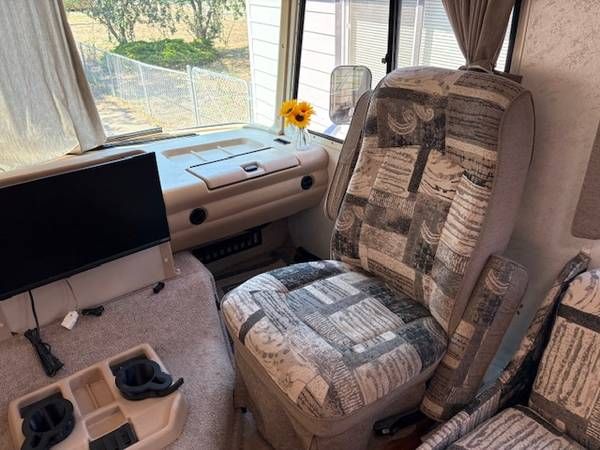 Extensive updates make this motorhome stand out. In 2024, it received Bilstein shocks, Timbren stabilizers, six brand-new tires, a large-capacity 12V refrigerator/freezer, a new awning, three Bluetooth cameras, and a dash-mounted digital tire pressure monitor. In 2025, upgrades included three new deep-cycle coach batteries, a dark-tinted safety glass rear window, a new heater motherboard, new front rims, and heavy-duty wheel covers.