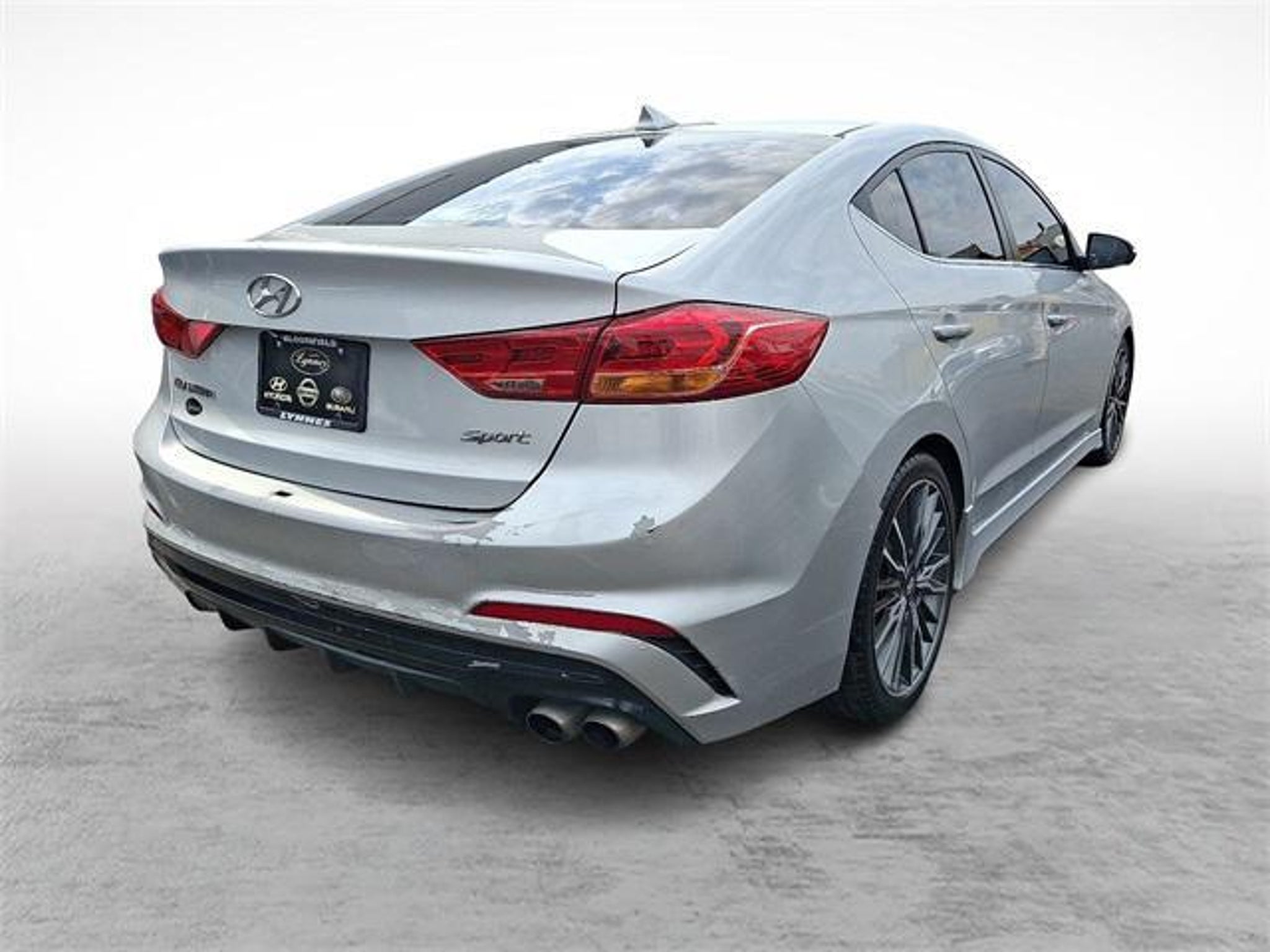 This 2018 Hyundai Elantra has passed the Lynnes comprehensive 172 point inspection with flying colors. Our ASE certified technicians have inspected this Elantra and have brought it up to date with all its regularly scheduled maintenance. Buy this Elantra and have confidence that it will bring you years of reliable Transportation. 2018 Hyundai Elantra Sport Symphony Air Silver 7-Speed Automatic FWD 1.6L Turbo GDI 4-Cylinder 26/33 City/Highway MPG Drive Home Happy Promise, New Beginning Automotive Financing - Our Goal 100% Credit Approval, 18 x 7.5 Alloy Wheels, 4-Wheel Disc Brakes, 6 Speakers, ABS brakes, Air Conditioning, Alloy wheels, AM/FM radio: SiriusXM, Apple CarPlay & Android Auto, Brake assist, Bumpers: body-color, Cargo Net, Carpeted Floor Mats, Delay-off headlights, Driver door bin, Driver vanity mirror, Dual front impact airbags, Dual front side impact airbags, Electronic Stability Control, Exterior Parking Camera Rear, Four wheel independent suspension, Front anti-roll bar, Front Bucket Seats, Front Center Armrest, Front reading lights, Fully automatic headlights, Heated door mirrors, Heated front seats, Heated Front Sport Seats, High-Intensity Discharge Headlights, Illuminated entry, Knee airbag, Leather Seating Surfaces, Leather Shift Knob, Leather steering wheel, Low tire pressure warning, Occupant sensing airbag, Option Group 01, Outside temperature display, Overhead airbag, Overhead console, Panic alarm, Passenger door bin, Passenger vanity mirror, Power door mirrors, Power moonroof, Power steering, Power windows, Radio: AM/FM/HD/SiriusXM/MP3 Display Audio, Rear anti-roll bar, Rear Bumper Applique, Rear seat center armrest, Rear window defroster, Remote keyless entry, Reversible Cargo Tray, Security system, Speed control, Speed-sensing steering, Split folding rear seat, Sport steering wheel, Steering wheel mounted audio controls, Tachometer, Telescoping steering wheel, Tilt steering wheel, Traction control, Trip computer, Turn signal indicator mirrors, Variably intermittent wipers. Type your sentence here.