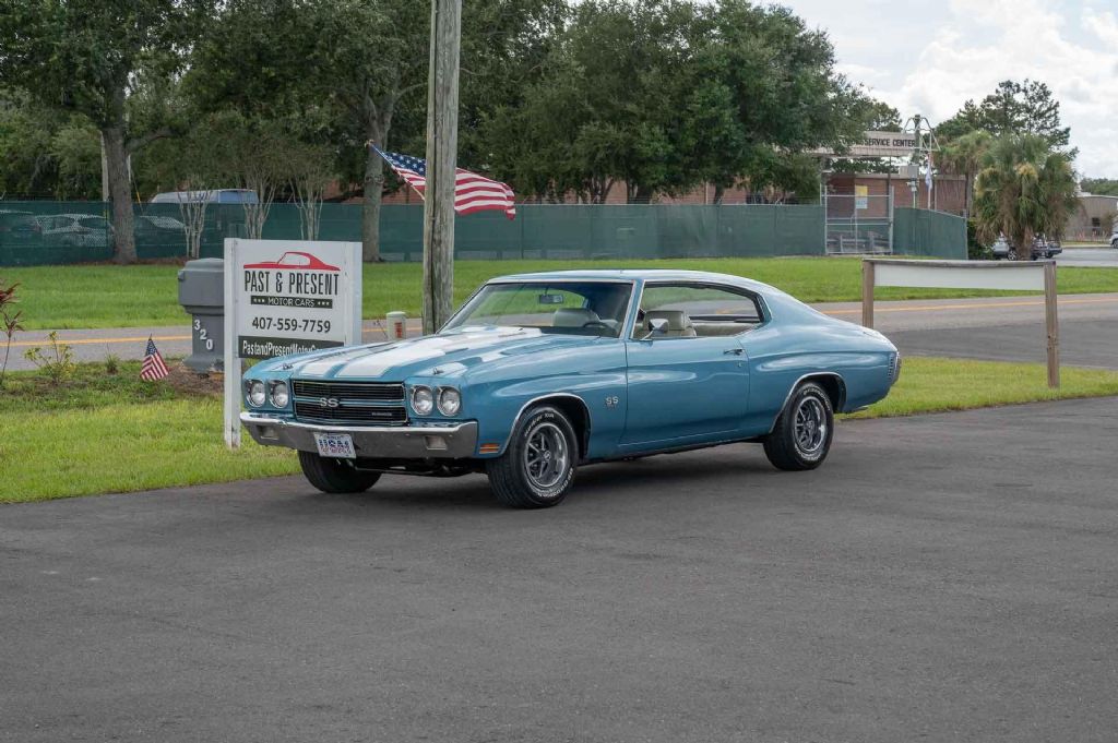 1970 Chevrolet Chevelle SS, Astro Blue / Ivory Interior with 2 Build Sheets, SS-Authenticated, High-End Restoration This 1970 Chevrolet Chevelle SS is a beautifully restored and highly authentic example of one of the most iconic American muscle cars. Finished in the correct and highly desirable Astro Blue (Code 25) with a contrasting Ivory bucket seat interior and center console, this Chevelle embodies the true muscle car look and feel. The car has been restored to a very high standard, featuring a stunning paint job, excellent chrome, and beautifully detailed interior. The trim tag proudly bears the L designation, further authenticating this car as a true Super Sport (SS) model. Power comes from a period-correct 396 cubic inch V8 engine paired with a strong Turbo 400 automatic transmission. The drivetrain is backed by a 12-bolt rear end with 3.31 gears, and the car is fitted with power front disc brakes for confident stopping power. A functional Cowl Induction Hood and great sounding dual exhaust system enhance both performance and presence. This Chevelle is not only about muscle it also offers comfort and convenience with factory-style Cold Air Conditioning, making it a pleasure to drive in all conditions. Rolling on BF Goodrich white-letter radial tires, it delivers the perfect stance and period-correct look. Key Features & Highlights: Correct Astro Blue (Code 25) with Ivory Bucket Seat Interior & Console Trim Tag L Designation authenticates true SS status 396 V8 Engine Turbo 400 Automatic Transmission 12-Bolt Rear End with 3.31 Gears Functional Cowl Induction Hood Power Front Disc Brakes Cold Air Conditioning Great-Sounding Dual Exhaust Two Original Build Sheets great documentation included Full-Size Spare Tire BF Goodrich White Letter Radial Tires This Chevelle SS is a high-end restoration with low miles since completion, combining authenticity, performance, and comfort. With its documented SS pedigree, period-correct drivetrain, and show-quality finish, this Chevelle is an outstanding choice for any collector or enthusiast who wants a true piece of American muscle car history. While we do our best to provide the highest quality muscle cars with an honest and reliable description and realize the importance of transparency when selling vehicles. That being said, we have not built, modified, changed or personally owned this vehicle. Whether this vehicle is consigned or owned by Past & Present Motor Cars we do not know the vehicles complete history since new. We want to be clear and try to answer any questions our customers might have prior to purchasing. Additionally, we not only welcome but we encourage 3rd party independent inspections. Please inquire prior to purchase to make sure the advertised vehicle has not already been sold. We list our vehicles on multiple websites and a vehicle can sell at any time. If a customer chooses to purchase sight unseen (many of our customers choose this option) the customer accepts the vehicle AS IS and WHERE IS and understands we cannot address concerns after purchase. For this reason, it's important all concerns are addressed prior to purchase. We make every effort to present accurate and reliable information, but use of this information is voluntary, and should only be deemed reliable after an independent review of its accuracy, completeness, and timeliness. It is the sole responsibility of the customer to verify the existence of options, accessories and the vehicle condition before time of sale. Financing is Available with low rates and Vehicle Shipping is available from our Showroom to your Garage. A Classic Car Warranty is Available for Purchase from a 3rd Party. Please speak to our Sales Associate or Company Representative for more information. Our team is working and available anytime by Phone or Text for your convenience at 407-559-7759. Thank you for your interest!