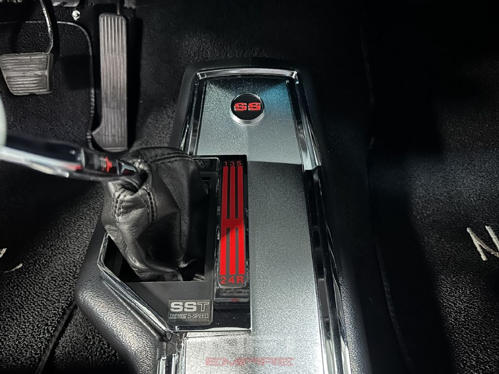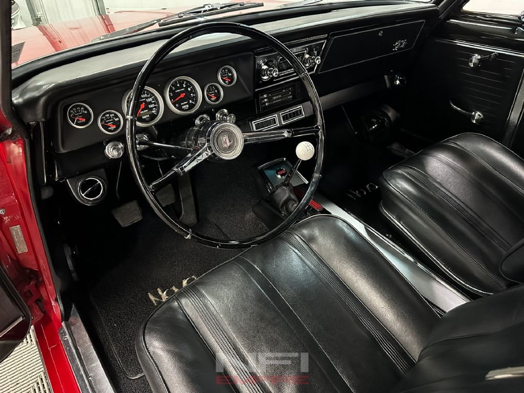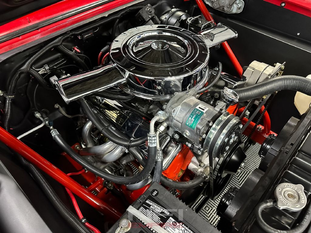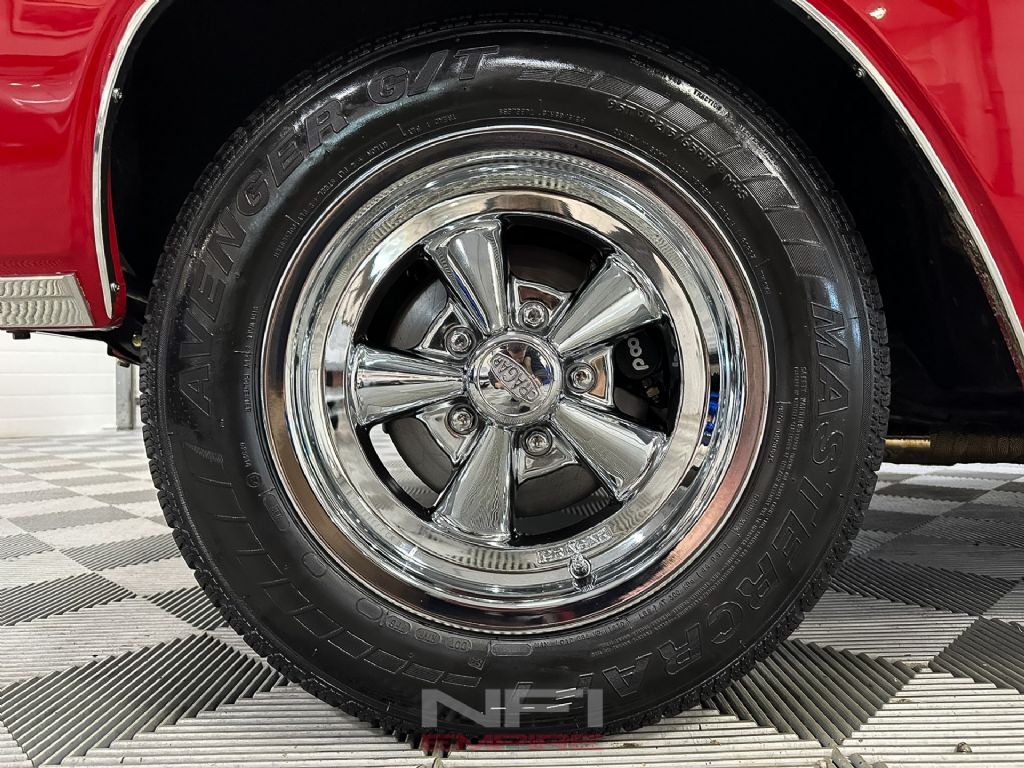 Under the hood sits a rebuilt 327ci small-block Chevrolet V8, fitted with a Comp cam, Scorpion rocker arms, aftermarket valve covers, long-tube headers, and a Holley Sniper EFI system for modern reliability and crisp throttle response. The engine runs on pump gas and exhales through a Flowmaster American Thunder exhaust system with Super 44 mufflers, delivering the right muscle car tone. Supporting upgrades include a new alternator, radiator, and driveshaft. A Tremec TKO 5-speed manual transmission handles shifting duties, paired with a new 9-inch rear end and 3.50 gears.