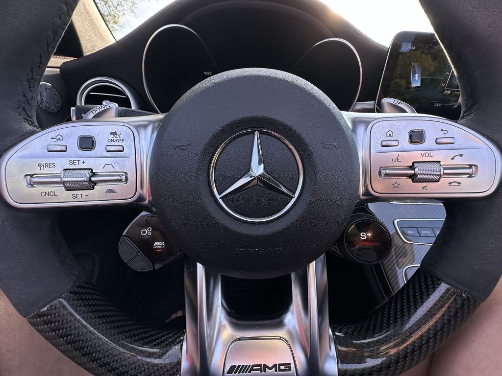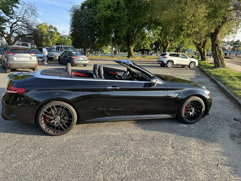 This 2021 Mercedes-AMG C63 S Cabriolet represents the final model year of the W205 generation powered by the iconic M177 4.0L biturbo V8, delivering 503 hp and 516 lb-ft of torque with a 0100 km/h time of about 4.1 seconds. As subsequent C63 models transitioned to 4-cylinder hybrid powertrains, this V8-powered convertible stands as a future collectible for enthusiasts of the AMG V8 era. Rarer than the coupe or sedan, it combines open-top luxury with track-capable performance, offering an unfiltered exhaust note purists consider irreplaceable. Fully loaded with every available option, it includes the Carbon Fiber Interior & Exterior Package, AMG Night Package, performance bucket seats, Burmester audio, and exclusive AMG styling with wide rear haunches, quad exhaust, and aggressive front fascia. Balancing everyday comfort with tuned aggression in Sport and Race modes, this C63 S Cabriolet is a rare opportunity to own a high-performance, open-air AMG masterpiece.