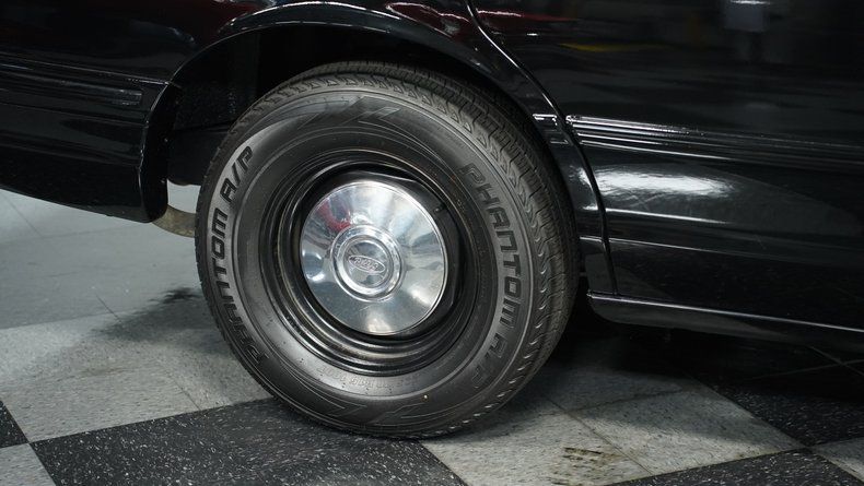 Under the hood sits Ford dependable 4.6 liter V8 paired to a four speed automatic transmission. This Crown Vic starts readily, idles smoothly, and shifts through the gears without issue. The drivetrain routes power through a solid 8.8 rear axle, and braking is handled by power disc brakes front and rear. The suspension uses coil springs, shocks and sway bars front and rear for the classic controlled cruiser feel. Tires are 225/70R15 with plenty of tread remaining and the 15 inch wheels wear original style hubcaps.