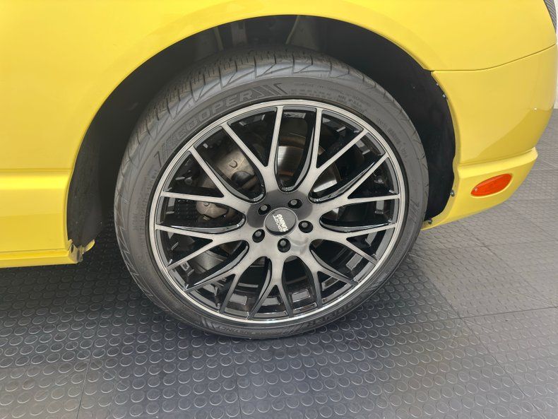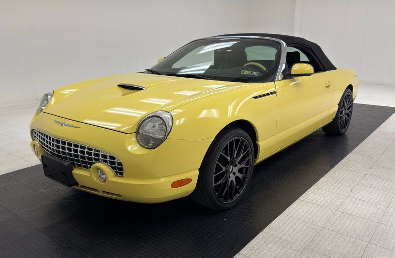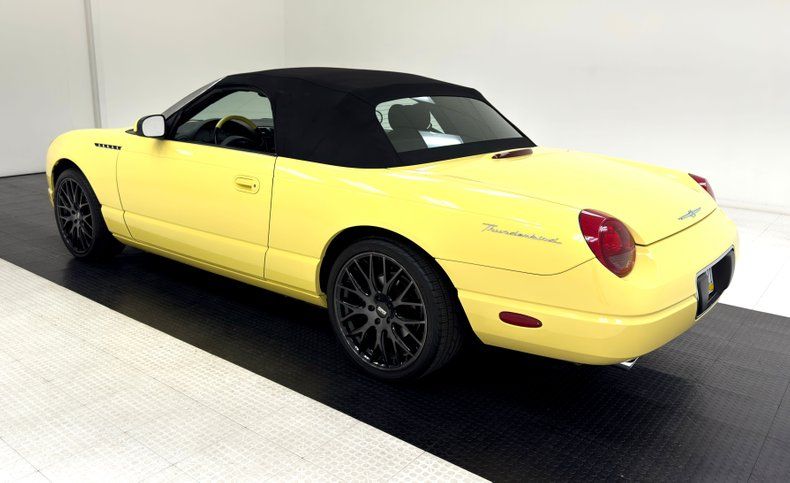 For consignment, a first year retro, low mileage, 30,002 title verified actual, fully equipped car. This car presents in very nice condition with the usual minor blemishes one would expect on a car from 2002 with 30K miles on it. A hardtop and soft top version, so you can drive it and have fun year-round and a hardtop folding stand/cart and a boot cover for when the top is down. Complete with its original window sticker, various brochures, and a rarely seen Thunderbird hard case book. Add in a new fuel pump in May of 2023 and you have a snappy yellow mink coat for father in modern form!