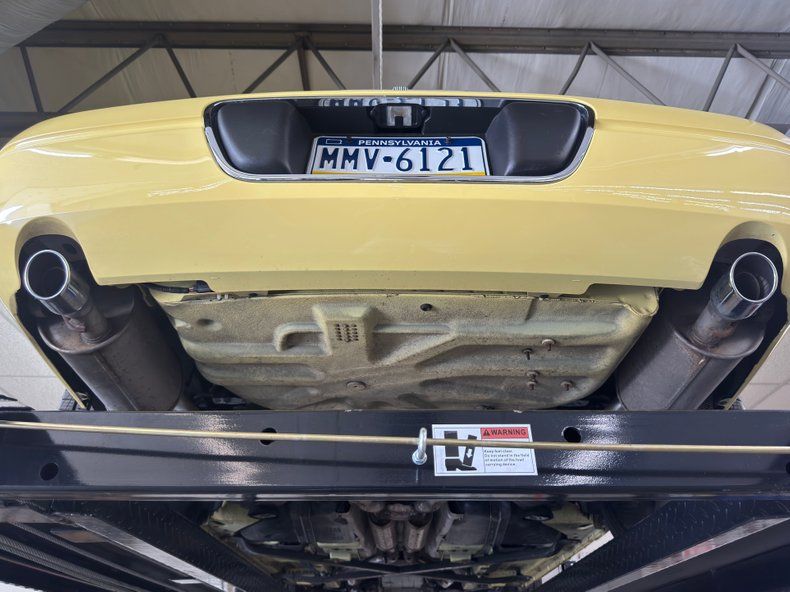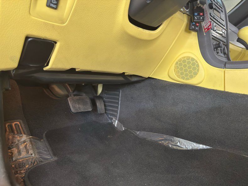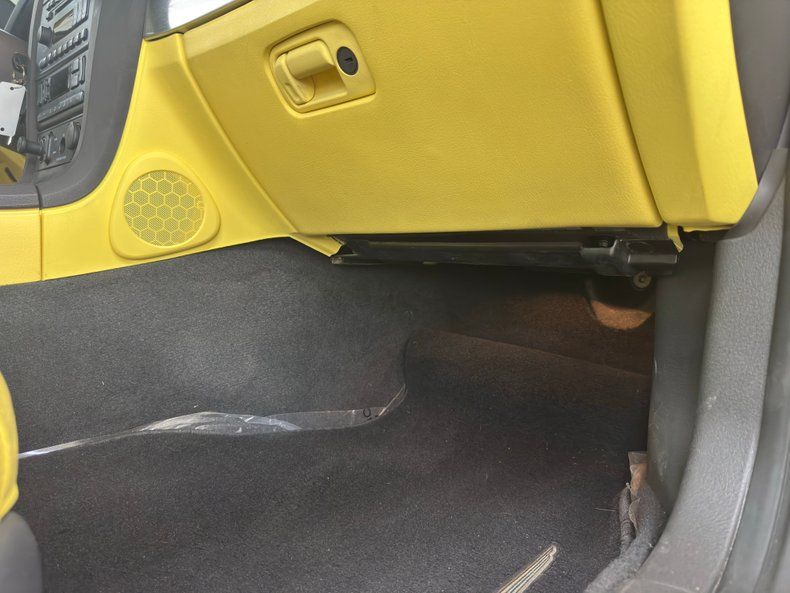 Inspiration Yellow loudly announces its presence and shouts out it is in very nice condition with straight steel, and well minded gaps. A black canvas power convertible top, in very good condition, raises and lowers quickly and effortlessly with only minor staining of the canvas. If you want more protection, put on the available hard top, complete with the harken back to the 50's porthole window, and lightly smoked glass on either side and brave the elements. This hard top is also Inspiration Yellow... see fields of sunflowers. Retro styling cues are seen throughout in the chrome Ferrari inspired egg crate grille, fog lights that simulate a flattened version of the Dagmars of yore, a simple hood scoop and those sexy rocket engine style tail lights. Cast aluminum wheels are noted on all 4 corners and are wrapped in newer black wall 19-inch tires.