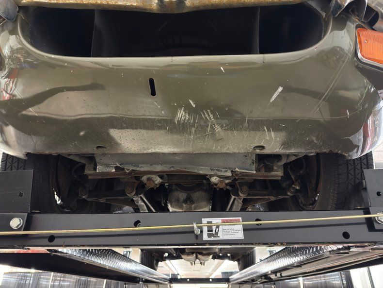 Undercarriage Driver quality conditions prevail underneath with surface rust and patina, including some flaws in the roll pan that wraps under the rear of the car. Four wheel disc brakes are onboard and independent suspension is also front and rear, with torsion bars up front and coil overs in back. The dual exhaust flows through stainless steel mufflers and resonators on their way to the tailpipes.