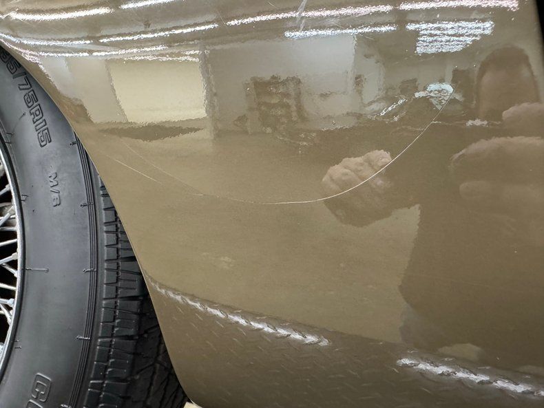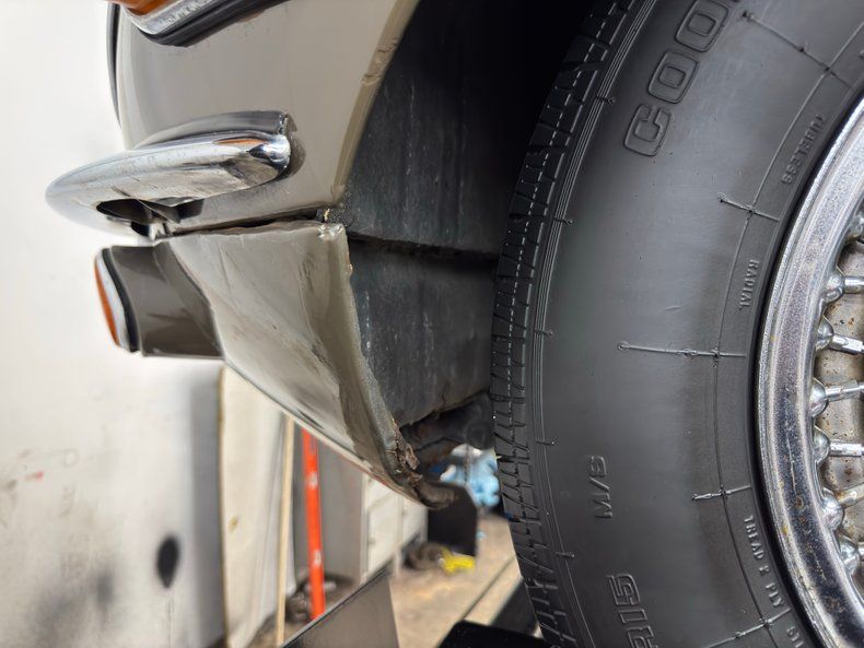 Exterior A sort of green toned brown coats the legendary lines of this big cat and is aptly named Ascot Fawn. The inset headlights and gaping mouth at the front end of the long nose, is iconic as it is epic and in nice condition with surface rust and bowing of the center emblem housing on the grille as well as on the bottom side of the crossbar. The louvers on the hood add the right amount of sportiness to the grand tourer and the 15-inch chrome wire wheels carry the class end of things, here showing some patina and peeling of the plating. The twin tailpipes extend past the rear bumper and flank the license plate and in profile, the spectacular long nose is accompanied by the high sloping rear section, long before the Porsche Panamera was dreamed up to accommodate rear passengers. Scuffs on the chin, less than perfect metal trim, uneven and cracking filler on the rear valance and numerous other places, gap imperfections, scratches, rust bubbles and some rust causing paint peeling all make our list of exterior flaws.