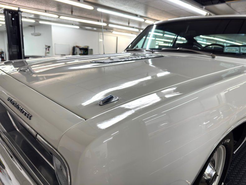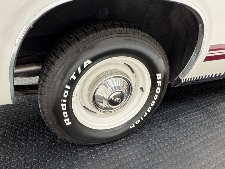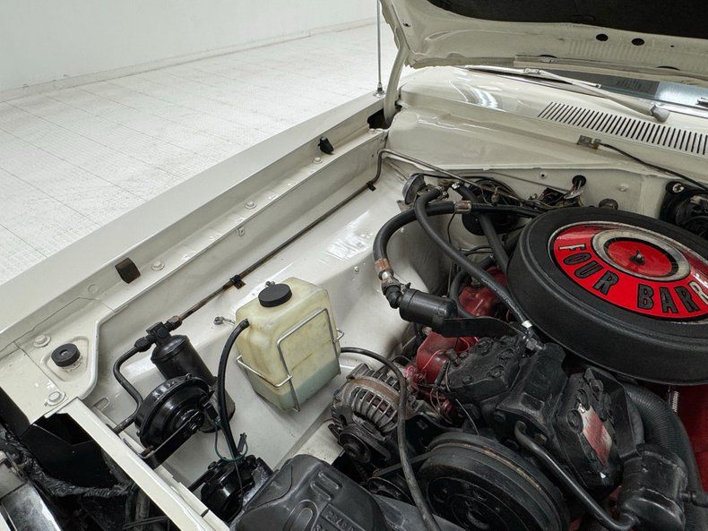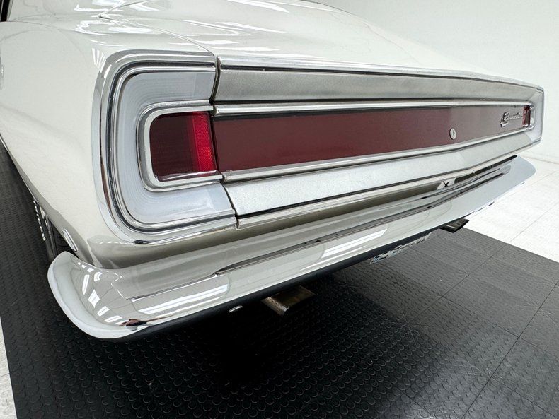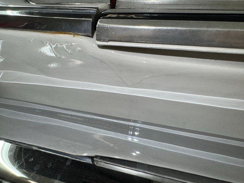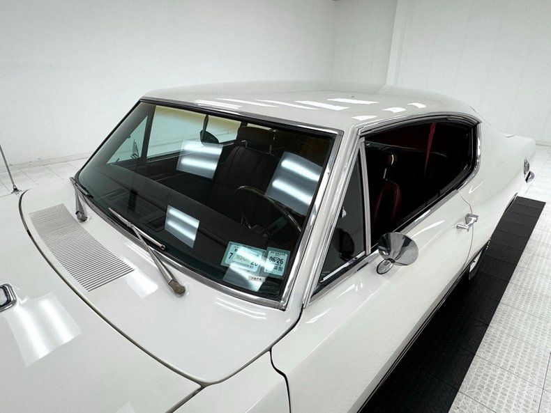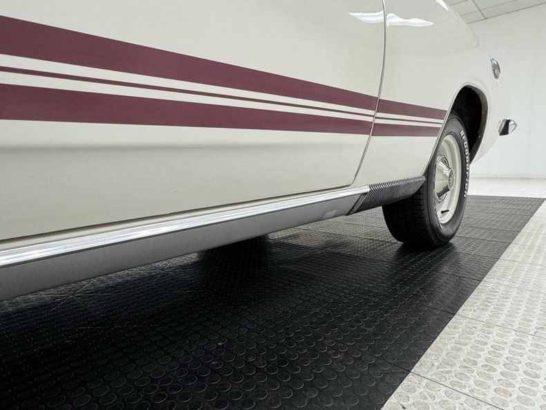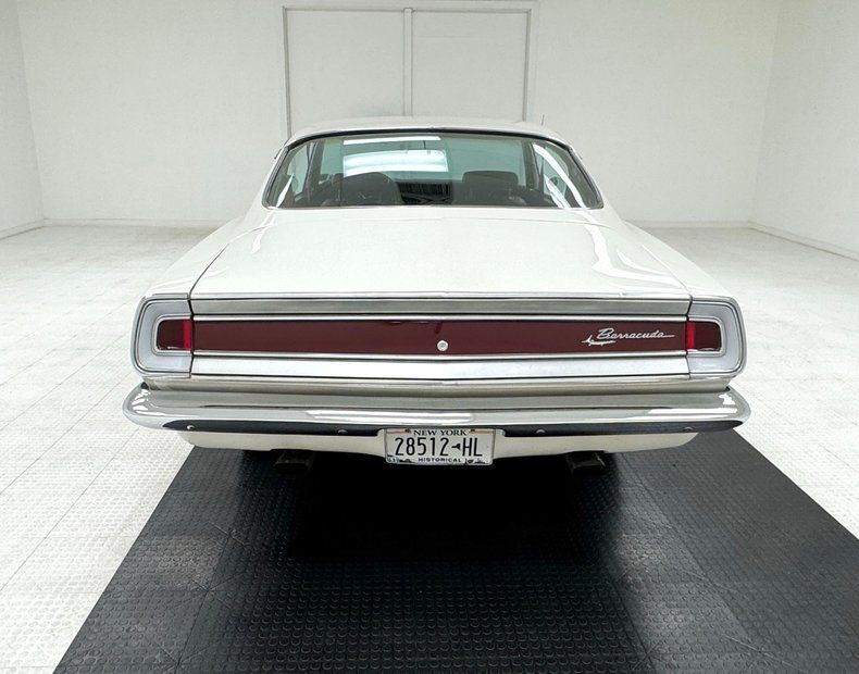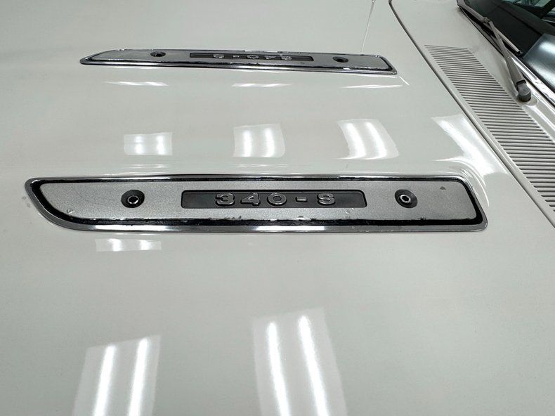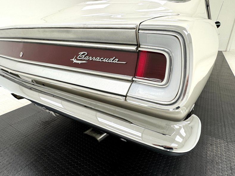Exterior Bathed in newer two stage Sable White, our fastback is also adorned with contrasting dark red rocker stripes. Though the face of the Barracuda was changed over the years, the second generation still presents a distinctive front with wide set headlights housed in individual grille sections surrounded by metal and plastic bezels. The hood inserts are for appearance only and don't vent to the engine and using such ornamental items was common on cars of the era while the hood mounted turn indicators are functional. The Barracuda script emblem is on the fender over the iconic Formula S plate and 14-inch body matched steel wheels and dog dish hubcaps are wrapped in 205/70R14 tires with a mid2024 date code. We cast our net rearward and catch the sharply sloping rear window, an objectively beautiful design when viewing the profile of the car. The tail is encircled by polished trim that continues around the small tail lights augmented by the band of red that connects them, perfectly coordinated with the side racing stripes. Imperfections include paint that is not perfectly smooth on the hood and other horizontal surfaces, paint runs under the tail light section and rear valance, and uneven filler surrounding the exhaust cutouts.