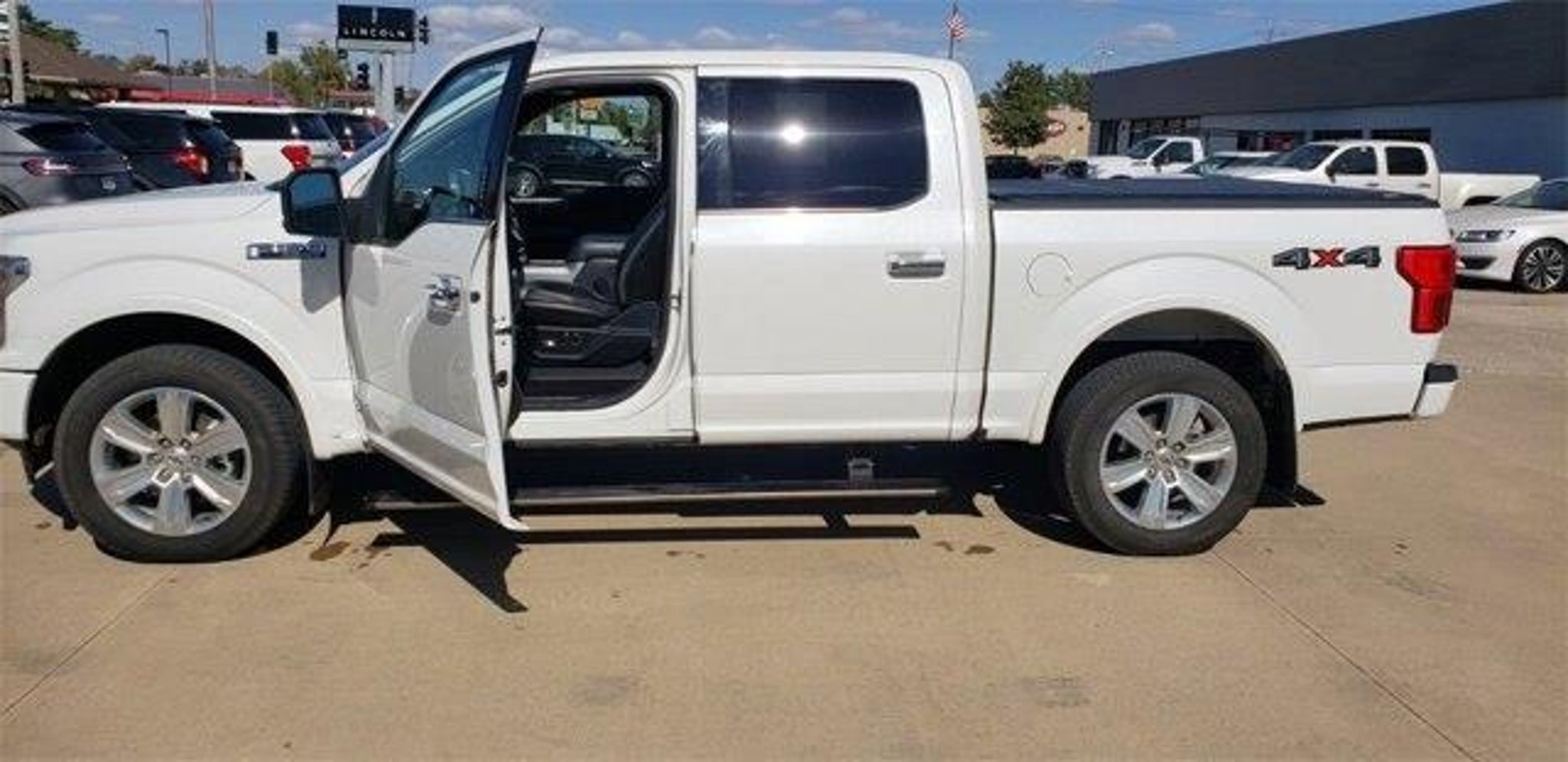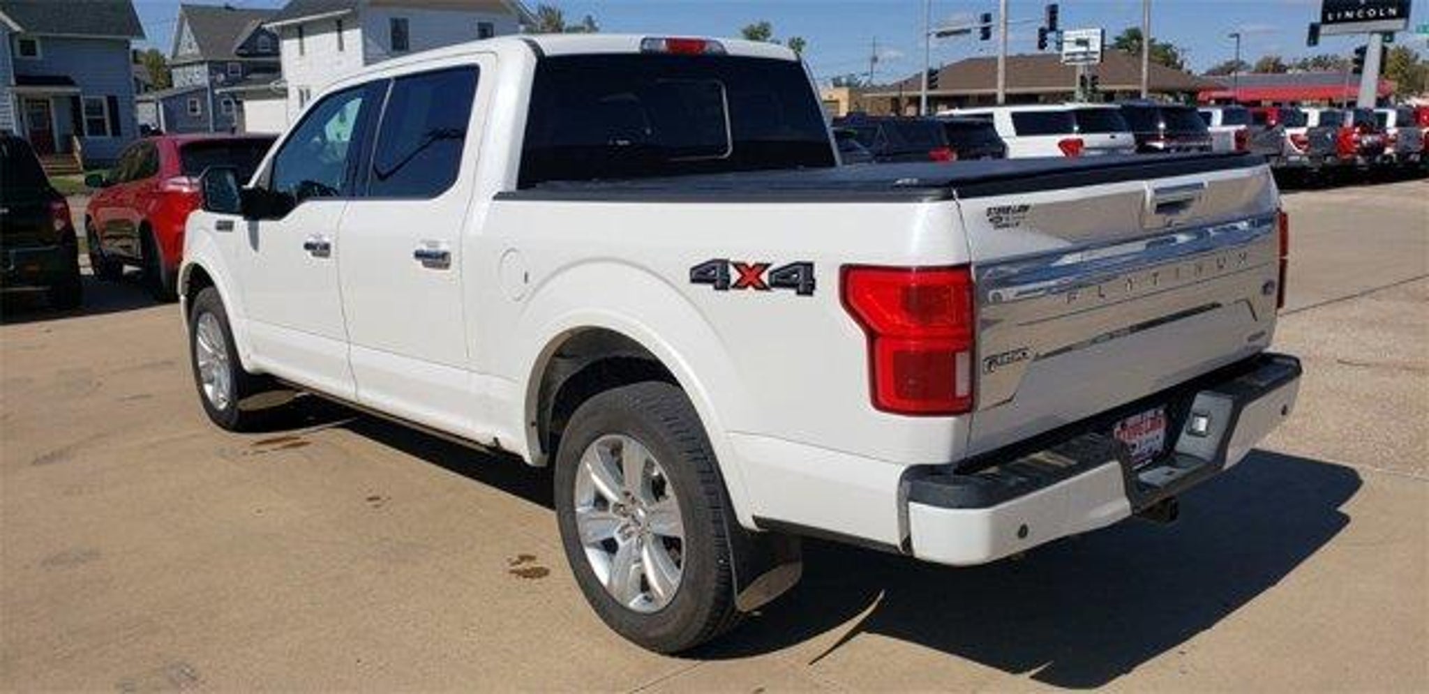 10 Speakers, 20 Polished Aluminum Wheels, 4-Wheel Disc Brakes, ABS brakes, Adaptive Cruise Control, Adjustable pedals, Air Conditioning, AM/FM radio: SiriusXM, Automatic temperature control, Class IV Trailer Hitch Receiver, Compass, Driver door bin, Driver vanity mirror, Dual front impact airbags, Dual front side impact airbags, Electronic Locking w/3.55 Axle Ratio, Equipment Group 701A Luxury, Exterior Parking Camera Rear, Front Bucket Seats, Front Center Armrest, Front dual zone A/C, Front License Plate Bracket, Fully automatic headlights, Heated door mirrors, Heated front seats, Heated steering wheel, Integrated Trailer Brake Controller, Low tire pressure warning, Max Trailer Tow Package, Memory seat, Navigation System, Occupant sensing airbag, Outside temperature display, Overhead airbag, Overhead console, Passenger vanity mirror, Pedal memory, Power door mirrors, Power driver seat, Power passenger seat, Power steering, Power windows, Pro Trailer Backup Assist, Radio: B&O Sound System by Bang & Olufsen, Rear Parking Sensors, Rear window defroster, Remote keyless entry, Speed control, Steering wheel mounted audio controls, Tachometer, Tailgate Step w/Tailgate Lift Assist, Technology Package, Telescoping steering wheel, Tilt steering wheel, Traction control, Twin Panel Moonroof, Variably intermittent wipers, Ventilated front seats. White 2020 Ford F-150 Platinum 4WD 10-Speed Automatic 3.5L V6 EcoBoost