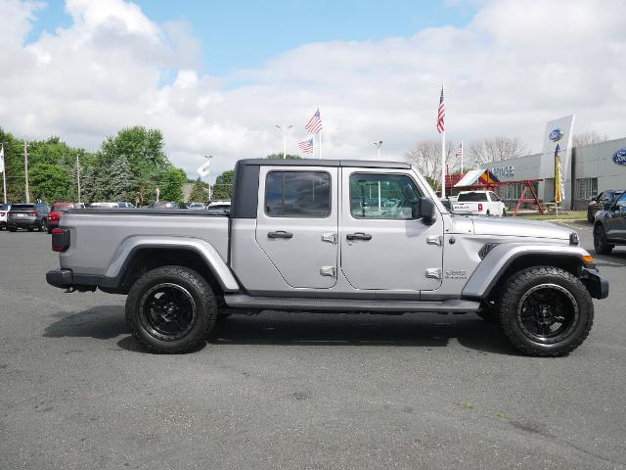 This 2020 Jeep Gladiator Overland 4x4 blends rugged capability with premium comfort like no other midsize pickup. Powered by a 3.6L V6 engine and paired with an 8-speed automatic transmission, this Gladiator is ready to handle off-road trails and city commutes with confidence. Dressed in Billet Silver Metallic with a black leather interior, it boasts the perfect mix of function and refinement. This well-equipped model includes the Cold Weather Group (heated front seats, heated steering wheel, and remote start), Premium LED Lighting Group, Trailer Tow Package, and Jeep Active Safety Group featuring blind-spot monitoring and ParkSense rear park assist. Enjoy the upgraded 8.4 Uconnect NAV system, Alpine premium audio, and Apple CarPlay/Android Auto to keep you connected and entertained. The Black Freedom Top 3-piece hardtop, spray-in bedliner, and all-terrain tires add practical versatility for your everyday adventures. With iconic Jeep style and Overland luxury, this Gladiator is built for those who want to go anywhere --- without giving up anything. Come take it for a drive and see what freedom feels like!