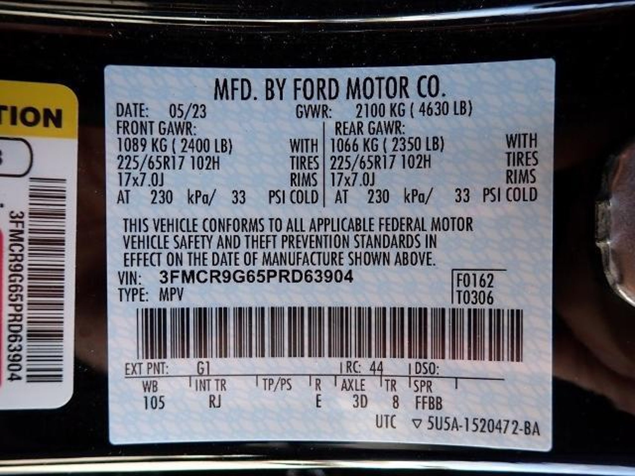 VIN 3FMCR9G65PRD63904