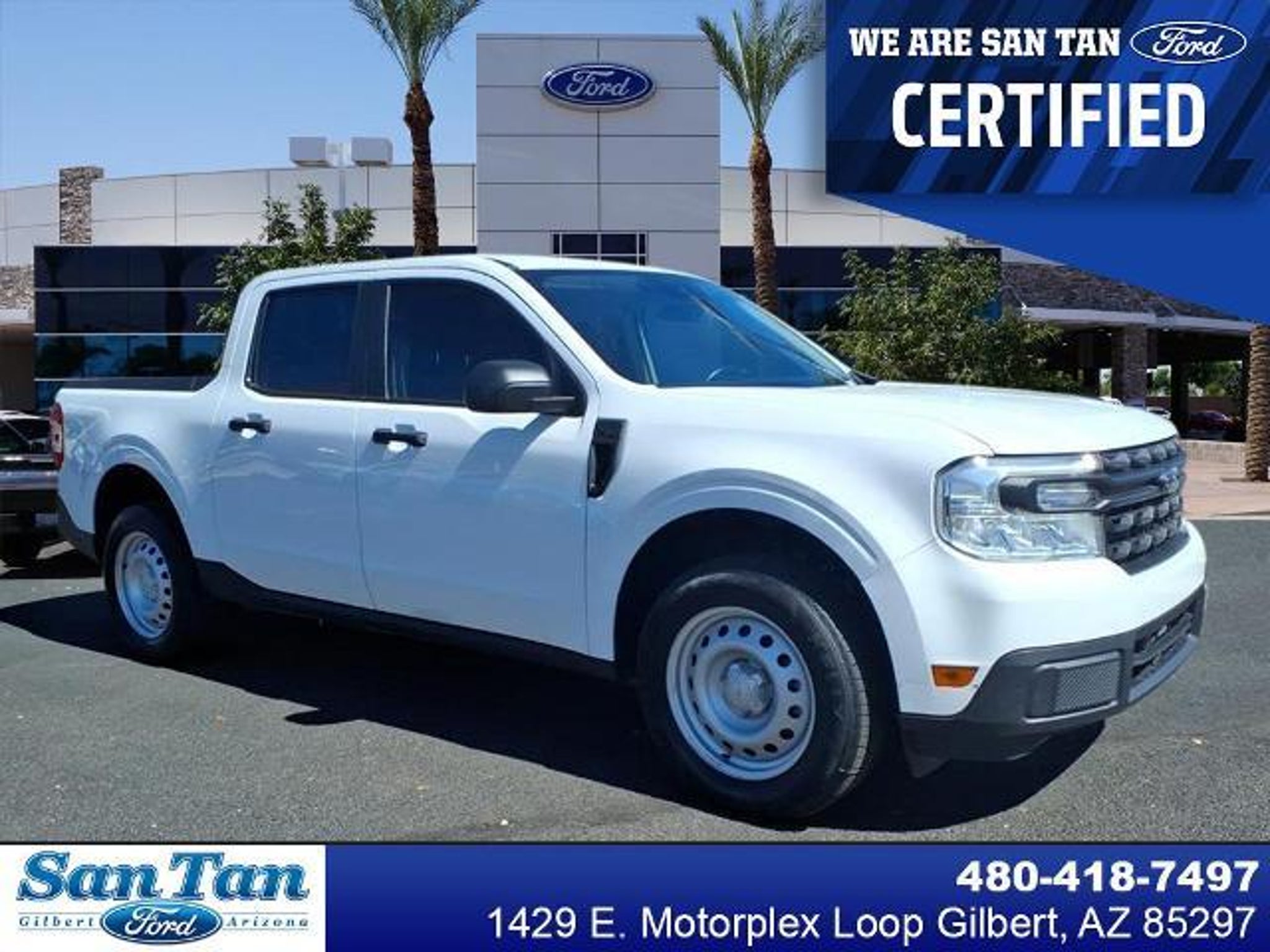 SAN TAN FORD STANDS OUT AS ONE OF THE NATIONS FASTEST-GROWING FORD DEALERSHIPS DELIVERING EXCEPTIONAL PERFORMANCE AND GROWTH FOR THE PAST 18 YEARS. Certified. 2022 Ford Maverick XL CARFAX One-Owner. Clean CARFAX. Equipped with Android Auto Apple Car Play Auto High-beam Headlights Brake assist Electronic Stability Control Equipment Group 100A Standard Exterior Parking Camera Rear Steering wheel mounted audio controls Super Cold Air Conditioning Wheels: 17 Sparkle Silver Steel. 42/33 City/Highway MPG Certification Program Details: San Tan Ford Certified: Unleash Worry-Free Adventures! Buckle up for unmatched reliability! Your vehicle aced our intense 160-Point Quality Inspection under the San Tan Ford Certified Program delivering peak performance and ironclad peace of mind. Enjoy complimentary 3-Month/4000-Mile coverage (whichever hits first) on vital systems - because every drive should thrill not stress. Heres the powerhouse protection breakdown: Engine Mastery: . Timing cover: Guards essential timing components from debris and grime for flawless operation. Transfer Case Dominance: . Transfer case & all internal lubricated parts: Ensures seamless power distribution in AWD/4WD beasts. Drive Axle Power: . Drive axle(s): Channels raw power to wheels for unstoppable propulsion. . Constant velocity joints (CV joints): Covered unless failure stems from ignored damaged driveshafts (boots excluded). . Universal joints: Flexibly transmit power while keeping everything aligned. A/C Cool Command: . Compressor: The core that compresses refrigerant for icy cabin bliss. . HVAC control: Masters heating venting and cooling for ultimate comfort. . Expansion valve & orifice tube: Fine-tune refrigerant flow for max efficiency. Transmission Triumph: . Transmission: Handles gear shifts and power delivery like a champ. . Flex plate: Links engine to torque converter in autos for smooth starts. . Vacuum modulator: Adapts to engine load for effortless shifting. . Transmission mounts: Anchor it firmly to cut vibrations and boost stability. This certification isnt just a stamp - its your adventure ally backed by extended warranty on these critical zones. Conquer commutes or wild escapes with total confidence! For complete terms check official San Tan Ford Certified docs. Awards: * NACTOY 2022 North American Truck of the Year Enhance your ride with optional dealer-installed protections available beyond the vehicles asking price. Add the LoJack Anti-Theft GPS Tracking System for $995! San Tan Ford proudly serves Gilbert Chandler Phoenix and nearby communities!