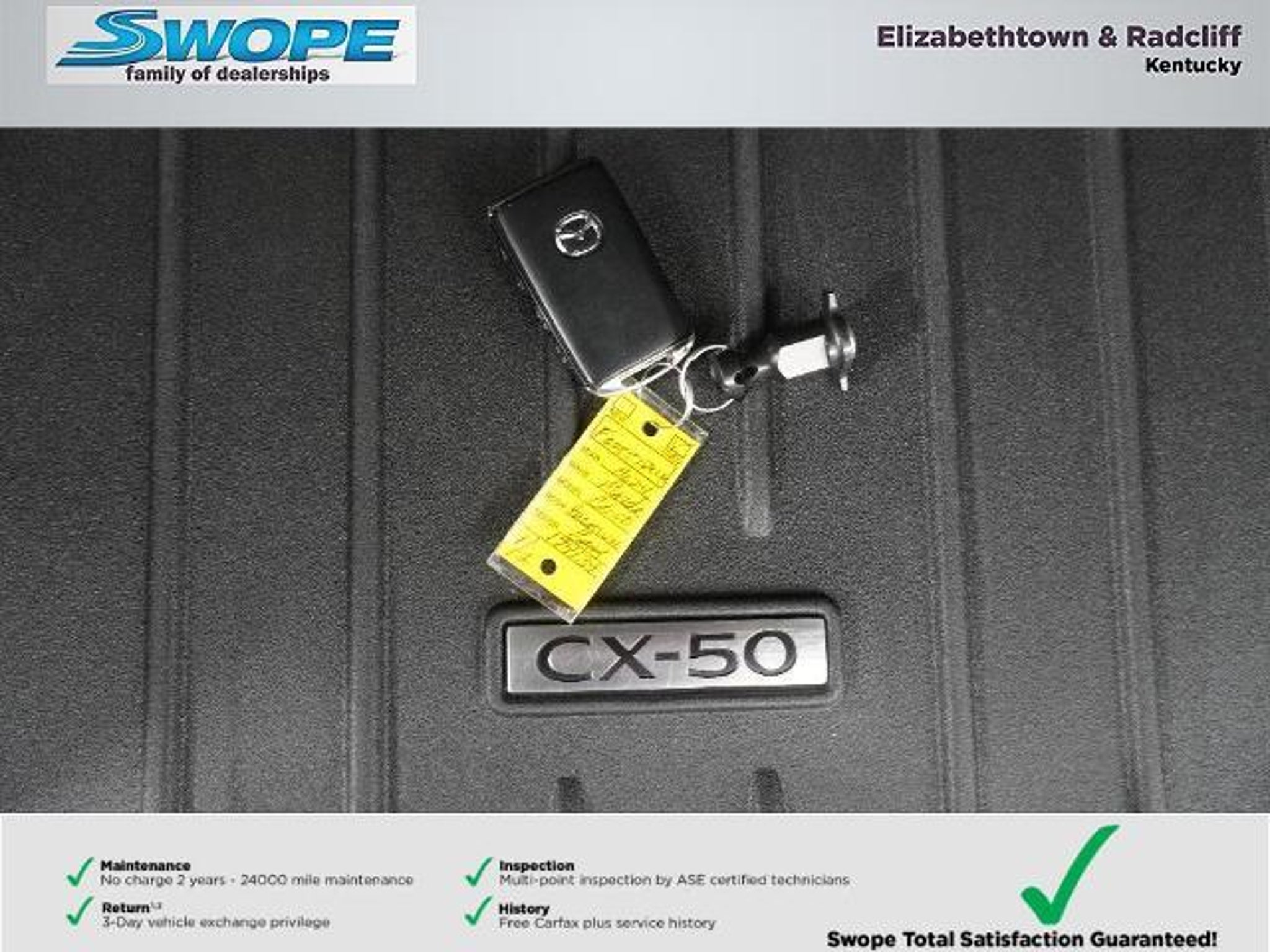 Details > 2024 Mazda CX-50 AWD 2.5 S Premium 4DR SUV For Sale in Elizabethtown, KY Private Party Sellers Click here to place your ad now! You auta tell them you saw the ad in AutaBuy when you call or email. 1/34 2/34 3/34 4/34 5/34 6/34 7/34 8/34 9/34 10/34 11/34 12/34 13/34 14/34 15/34 16/34 17/34 18/34 19/34 20/34 21/34 22/34 23/34 24/34 25/34 26/34 27/34 28/34 29/34 30/34 31/34 32/34 33/34 34/34 View 34 Photos View All Add to My Garage Parked in Your Garage! Bob Swope Ford, Inc. Contact Seller: I would like to: Make Offer Check Availability Ask A Question Request More Photos Check Financing Options Send a copy of this message to me Add this listing to my garage Send to Mobile Mileage 48,645 Exterior Color Machine Gray Metallic Interior Color Black W/ Gray Doors 4 Engine 2.5L I4 Transmission 6 Speed Auto Stock # F2485188LA VIN 7MMVABDM6RN174134 Estimated Monthly Payment $539 mo Apply Now J.J. Best Banc & Co. 2024 Mazda CX-50 AWD 2.5 S Premium 4DR SUV Description: · Mileage: 48,645 · Color: Machine Gray Metallic Price: $30,975. Mileage 48,645 Exterior Color Machine Gray Metallic Interior Color Black W/ Gray Doors 4 Engine 2.5L I4 Transmission 6 Speed Auto Stock # F2485188LA VIN 7MMVABDM6RN174134 Estimated Monthly Payment $539 mo Apply Now J.J. Best Banc & Co. Add to My Garage Parked in Your Garage! Message Seller Bob Swope Ford, Inc. Contact Seller: I would like to: Make Offer Check Availability Ask A Question Request More Photos Check Financing Options Send a copy of this message to me Add this listing to my garage Offered for sale by Bob Swope Ford, Inc. ELIZABETHTOWN, KY Price: $30,975. Offered for sale by Bob Swope Ford, Inc. ELIZABETHTOWN, KY [entire inventory] Ask Auta Intelligence What engine options did these come with? When was this model first introduced? What factory options were available on this model? What does this VIN number tell me? What trim levels were available for this model? How easy are parts to find for this model? What kind of mileage do these get? Can you show me more suvs for a similar price? What colors did these come in? How far is this from me? How many of these were produced? What safety features does this model offer? What transmission options did these offer? Tell me more about this model Do you have a similar car to sell? List It Now! Questions about this car? Ask Auta Intelligence for production numbers, available options, etc. · Subscribe to AutaBuy! · Send a Gift Subscription Notice to a Friend