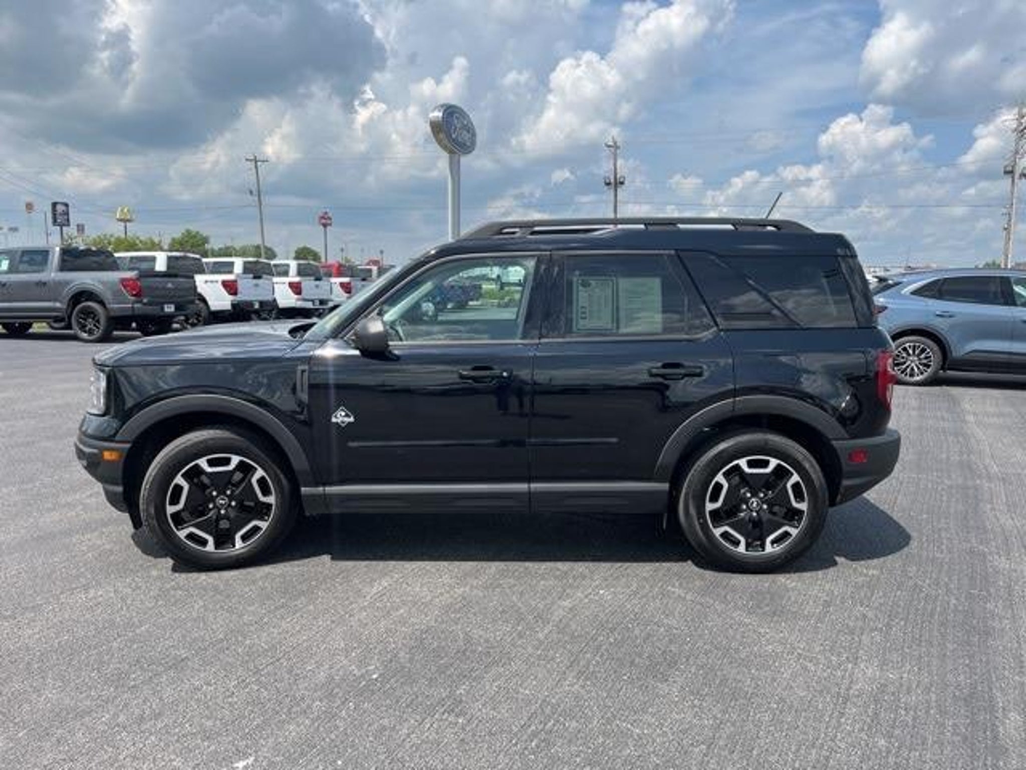 4WD 8-Speed Automatic Shadow Black 2022 Ford Bronco Sport Outer Banks 1.5L EcoBoost 25/28 City/Highway MPG Serving the communities of Litchfield, Hillsboro, Staunton, Raymond, Mt. Olive, Greenville, Springfield, Farmersville, Carlinville, Gillespie, Benld, Edwardsville, Bethalto, Glen Carbon, Highland, Vandalia, Pana, Nokomis, Morrisonville, Girard, Virden, Jerseyville, Collinsville for almost 20 years. -- This vehicle includes the following features - Class II Trailer Tow Package w/Trailer Sway Control, Equipment Group 300A, Tech Package (HD Radio, Universal Garage Door Opener (UGDO), and Wireless Charging Pad), 3.80 Axle Ratio, 4-Wheel Disc Brakes, 6 Speakers, ABS brakes, Air Conditioning, Alloy wheels, AM/FM radio: SiriusXM, AM/FM Stereo, Auto High-beam Headlights, Auto-dimming Rear-View mirror, Automatic temperature control, Brake assist, Cargo Management System, Compass, Delay-off headlights, Driver door bin, Driver vanity mirror, Dual front impact airbags, Dual front side impact airbags, Electronic Stability Control, Emergency communication system: SYNC 3 911 Assist, Four wheel independent suspension, Front anti-roll bar, Front Bucket Seats, Front Center Armrest, Front dual zone A/C, Front fog lights, Front reading lights, Fully automatic headlights, Heated door mirrors, Heated front seats, Heated steering wheel, Illuminated entry, Knee airbag, Leather Trimmed Heated Sport Contour Bucket Seats, Low tire pressure warning, Occupant sensing airbag, Outside temperature display, Overhead airbag, Overhead console, Panic alarm, Passenger door bin, Passenger vanity mirror, Power door mirrors, Power driver seat, Power passenger seat, Power steering, Power windows, Radio data system, Rain sensing wipers, Rear anti-roll bar, Rear Parking Sensors, Rear reading lights, Rear seat center armrest, Rear window defroster, Rear window wiper, Remote keyless entry, Roof rack: rails only, Security system, SiriusXM Radio, Speed control, Speed-sensing steering, Speed-Sensitive Wipers, Split folding rear seat, Steering wheel mounted audio controls, SYNC 3 Communications & Entertainment System, SYNC 3/Apple CarPlay/Android Auto, Tachometer, Telescoping steering wheel, Tilt steering wheel, Traction control, Trip computer, Variably intermittent wipers, and Wheels: 18 Ebony Black-Painted Aluminum.