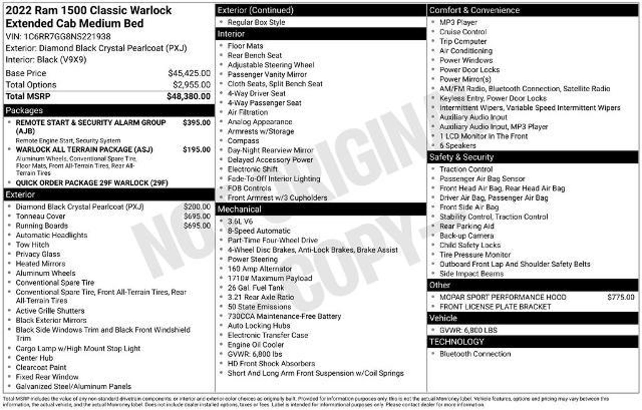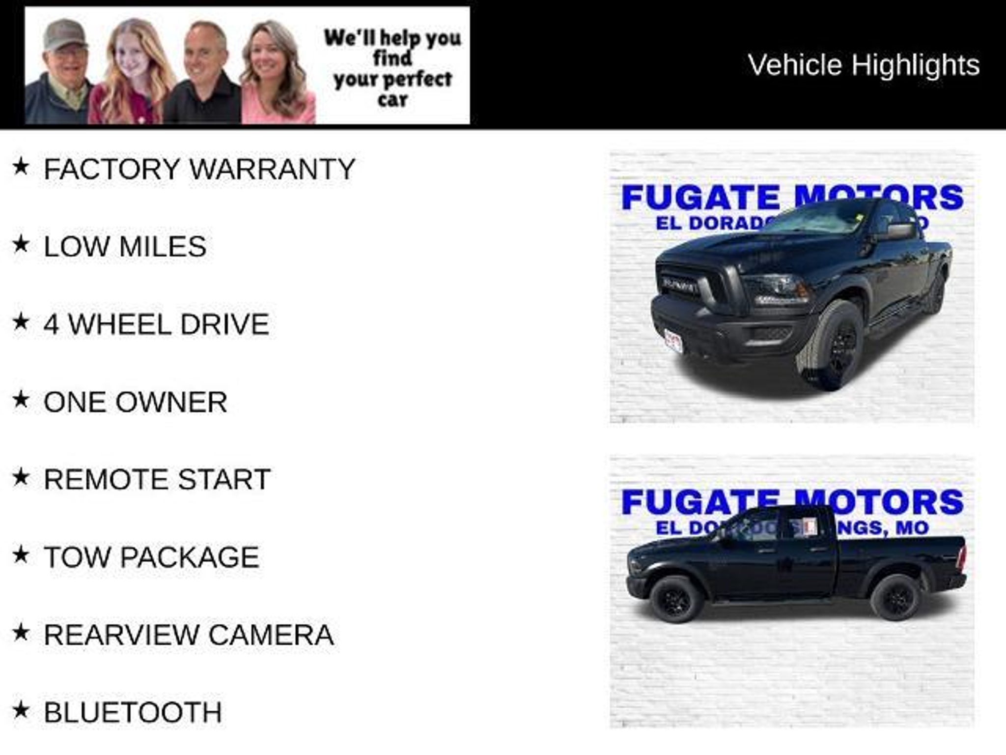 As always-ABSOLUTELY NO FEES! This 2022 Ram 1500 Classic Warlock is a rugged and capable pickup that's ready to take on any adventure. With its powerful 3.6L V6 engine, 4-wheel drive, and impressive towing capacity, this truck is built to handle the toughest jobs with ease. But it's not just about raw power - this Warlock model comes loaded with a host of premium features that make it a joy to drive every day. - Factory Warranty - Low Miles - 4 Wheel Drive - One Owner - Remote Start - Tow Package - Rearview Camera - Bluetooth - Uconnect - Clean Carfax - Mopar Sport Performance Hood - Mopar Black Tubular Side Steps - Remote Start & Security Alarm Group - Warlock All Terrain Package Step inside and you'll be greeted by a spacious and well-appointed interior, with comfortable cloth seats, a user-friendly infotainment system, and a host of convenient amenities. The Warlock package adds even more style and capability, with a unique blacked-out exterior treatment, off-road-ready tires, and premium floor mats. Whether you're hauling the family, towing a trailer, or tackling rough terrain, this 2022 Ram 1500 Classic Warlock is up for the challenge. With its impressive performance, rugged good looks, and long list of premium features, it's the perfect blend of work and play. Come in and take it for a test drive today - we're confident you'll be impressed. This truck won't last long, so don't miss your chance to make it your own. Visit our showroom and let us put you behind the wheel of this exceptional 2022 Ram 1500 Classic Warlock. We look forward to earning your business.