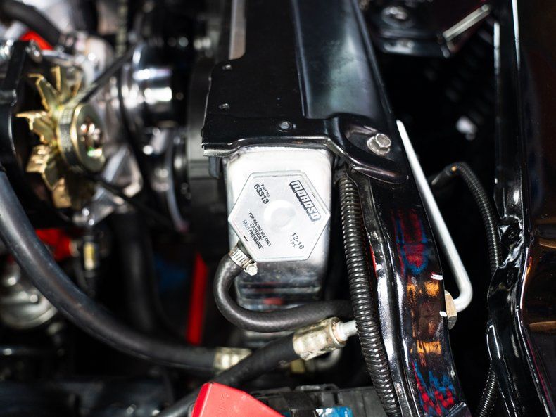 Underneath, the Camaro's undercarriage is fully detailed and upgraded, featuring adjustable QA1 and Bilstein shocks for tunable ride quality and handling balance. The power flows through a Quick Performance Ford 9-inch rear end with 31-spline axles and 3.50 gears, built to handle the torque of that massive big block. Drain and fill plugs add serviceability, while 11-inch rear drums maintain a period-correct look with modernized reliability. Every component - from the suspension arms to the exhaust system - has been installed and finished with care, showcasing the same level of attention seen throughout this no-compromise build.
