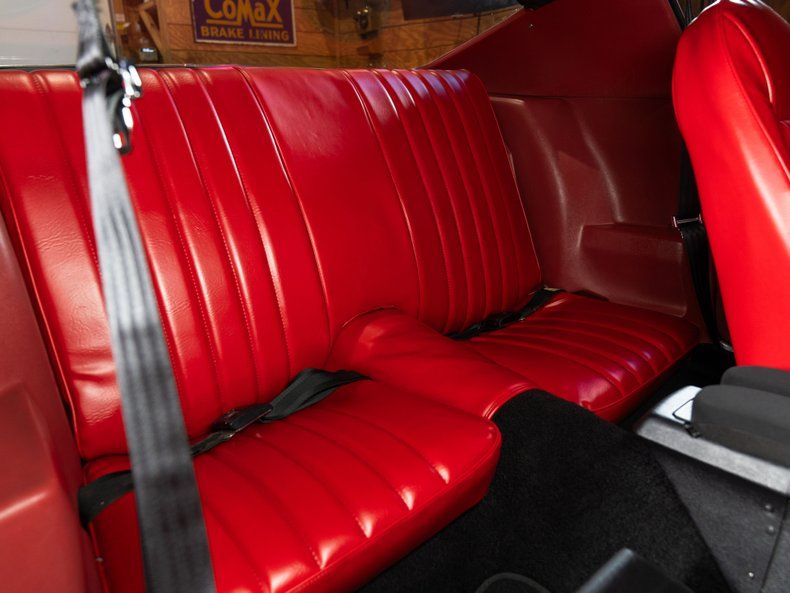 Interior: Custom Red Interior Custom Works Dash Auto Meter Gauges RetroSound Bluetooth Radio Vintage Air Conditioning and Heat