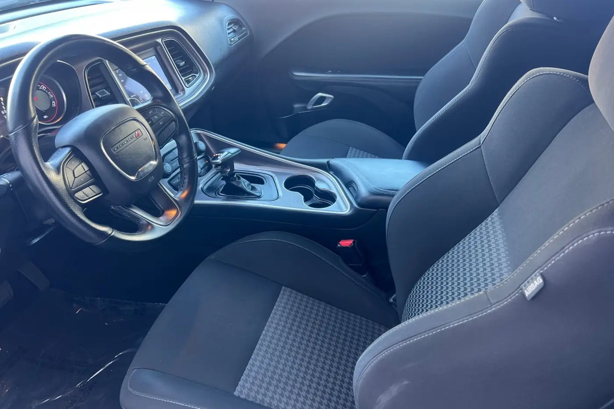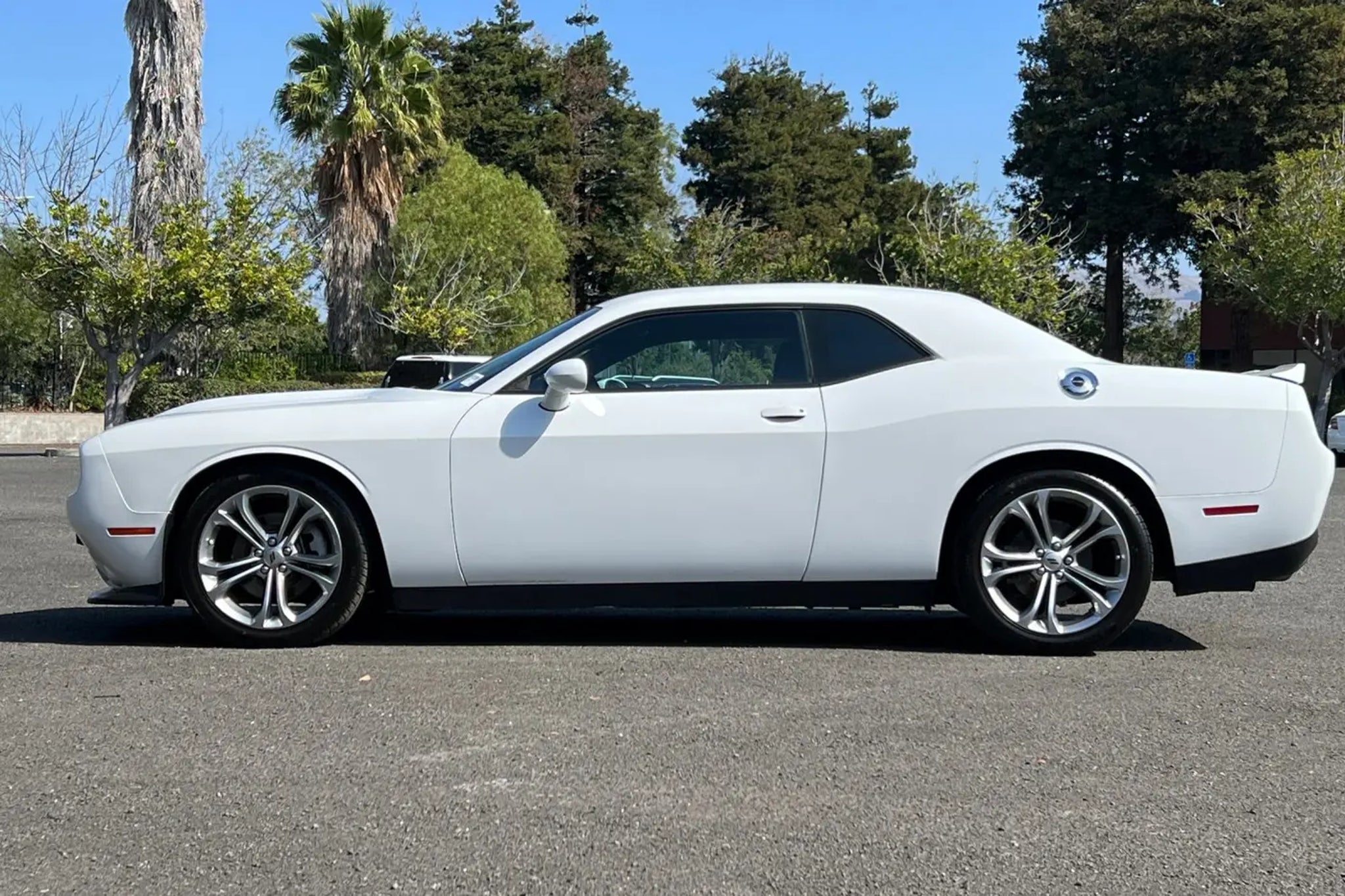 This 2022 White Knuckle Clearcoat Dodge Challenger R/T RWD is well equipped and includes these features and benefits: Quick Order Package 28H, Challenger R/T, HEMI 5.7L V8 Multi Displacement VVT, Radio: Uconnect 4 w/7 Display, Wheels: 20 x 8.0 Satin Carbon Aluminum, 4-Wheel Disc Brakes, 6 Speakers, ABS brakes, Air Conditioning, Alloy wheels, AM/FM radio, Anti-whiplash front head restraints, Apple CarPlay, Apple CarPlay/Android Auto, Auto-dimming Rear-View mirror, Automatic temperature control, Brake assist, Bumpers: body-color, Compass, Compass Gauge, Delay-off headlights, Driver door bin, Driver vanity mirror, Dual front impact airbags, Dual front side impact airbags, Electronic Stability Control, Four wheel independent suspension, Front anti-roll bar, Front Bucket Seats, Front Center Armrest, Front dual zone A/C, Front fog lights, Front License Plate Bracket, Front reading lights, Fully automatic headlights, Garage door transmitter, Google Android Auto, GPS Antenna Input, Heated door mirrors, Houndstooth Cloth Performance Seats, Illuminated entry, Integrated Center Stack Radio, Integrated Voice Command w/Bluetooth, Leather Shift Knob, Low tire pressure warning, Media Hub (2 USB, AUX), Outside temperature display, Overhead airbag, Overhead console, Panic alarm, ParkView Rear Back-Up Camera, Passenger door bin, Passenger vanity mirror, Power door mirrors, Power driver seat, Power steering, Power windows, Radio data system, Rear anti-roll bar, Rear reading lights, Rear seat center armrest, Rear window defroster, Remote keyless entry, Security system, Speed control, Speed-sensing steering, Split folding rear seat, Spoiler, Sport steering wheel, Steering wheel mounted audio controls, Tachometer, Telescoping steering wheel, Tilt steering wheel, Traction control, Trip computer, USB Host Flip, and Variably intermittent wipers. PREVIOUS DAILY RENTAL, Challenger R/T, HEMI 5.7L V8 Multi Displacement VVT, Quick Order Package 28H, Radio: Uconnect 4 w/7 Display, Wheels: 20 x 8.0 Satin Carbon Aluminum. Odometer is 3570 miles below market average!